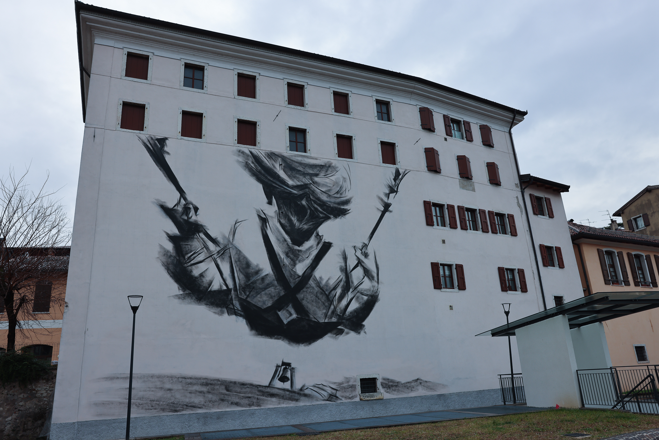 "L'arte contemporanea - ha dichiarato la sindaca Robol - ha il potere di far dialogare la memoria storica con il presente. Con questo murale desideriamo celebrare il Centenario di Maria Dolens e promuovere una riflessione sulla pace che coinvolge attivamente lo spazio urbano. L'opera valorizza un pregevole edificio storico e crea un ponte simbolico e visivo tra il cuore della città e il Colle di Miravalle, sede della Campana, rafforzando la nostra identità più profonda di Città della Pace".