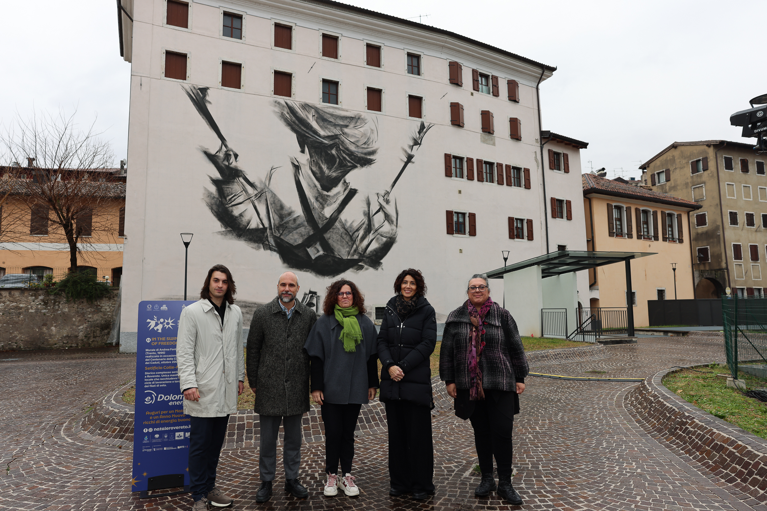 Il progetto artistico, voluto e promosso dal Comune di Rovereto, a 100 anni dal primo rintocco di Maria Dolens, è divenuto realtà grazie alla collaborazione della Provincia autonoma di Trento, della Soprintendenza ai Beni culturali e del Mart, per la parte curatelare. L’obiettivo è richiamare ai valori universali della pace attraverso la libertà e il dialogo e, al contempo, valorizzare l'edificio storico dell'ex Setificio Colle Masotti. Presenti alla cerimonia di inaugurazione, oltre all’artista Fontanari e al sostituto direttore dell’ufficio collezioni museali del Mart Denis Isaia, le classi prima e seconda dell’istituto d’arte Depero e la sindaca e l’assessora alla cultura di Rovereto: Giulia Robol e Micol Cossali. Entrambe hanno rimarcato come il murale si trova su di un edificio e in una zona molto importante per il passato e il presente della città. Nell’anno del suo centenario, l’opera mette in risalto e invita a riflettere sui valori che esprime Maria Dolens come la pace e la libertà.