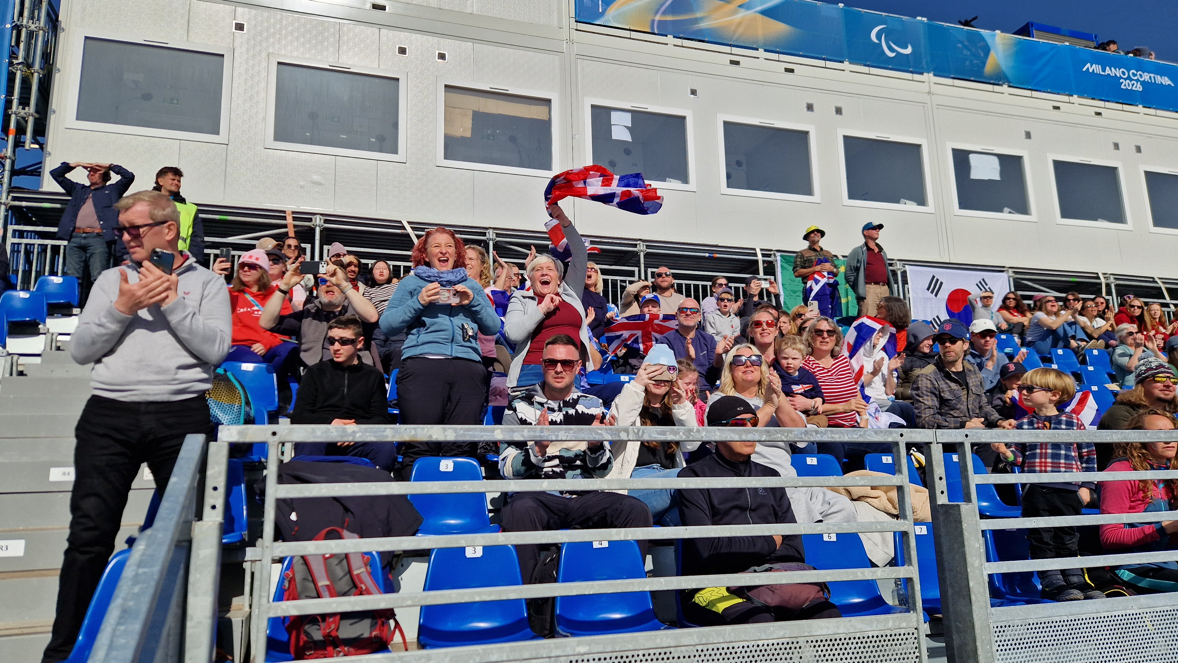 Mentre sulle piste gli atleti danno vita a sfide avvincenti, dietro le quinte i volontari controllano che tutto fili liscio, la musica riempie i tempi tecnici tra una gara e l'altra e sulla tribuna lungo il traguardo i fan club fanno sentire le loro voci: i genitori di Lennart Volkert coinvolgono nell'entusiasmo chiunque passi loro vicino, mentre c'è chi è venuto apposta dal Brasile per Rocha dos Santos, dalla Cechia per Carina Edlingerova, dalla Francia per Benjamin Daviet e il commento è sempre "beautiful". I più numerosi sono senza dubbio i tifosi a sostegno di Theo e Jakub Bold ma si contendono il primato con i sostenitori di Scott Meenagh: una ventina di fan tra amici e parenti dell'atleta tutti avvolti nell'Union Jack e giunti da Glasgow fino a Cavalese, dove alloggeranno per tutto il periodo paralimpico: "Il contesto è bellissimo – raccontano - ci sono le montagne, c'è la neve e c'è grande competizione sulla pista. Abbiamo la fortuna di poter utilizzare i mezzi pubblici che partono quasi sulla porta di casa e ci portano sin davanti al centro del fondo. Penso che di più non possiamo chiedere".
