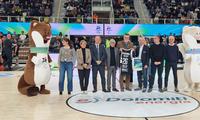 Nel corso della gara disputata dall’Aquila Trento Basket si sono svolte diverse iniziative per ricordare agli sportivi l’avvicinamento delle Olimpiadi