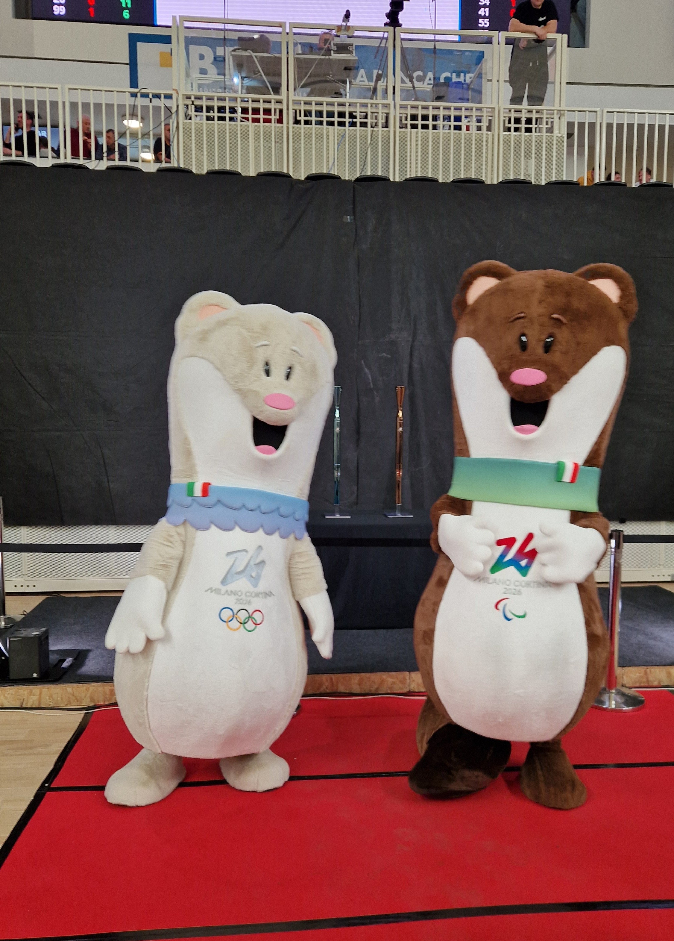 Hanno seguito la partita da bordo campo il presidente del consiglio provinciale Claudio Soini, la vicesindaca di Trento Elisabetta Bozzarelli, i rappresentanti del Coordinamento provinciale per le Olimpiadi Tito Giovannini assieme a Cristian Sala, Paolo Bouquet, Paola Mora (presente anche in veste di presidente del Coni) e Massimo Bernardoni (presidente del Cip). Sul parquet hanno sfilato anche le due mascotte dei Giochi, Tina e Milo coprotagoniste della serata assieme alle torce olimpiche. Sotto la tribuna est, nel prepartita e nell’intervallo lungo sono stati tanti gli appassionati che si sono voluti fare una foto o un selfie assieme alle mascotte e davanti alle fiaccole che stanno girando l’Italia e che a fine mese transiteranno in Trentino, a Cavalese e Trento.