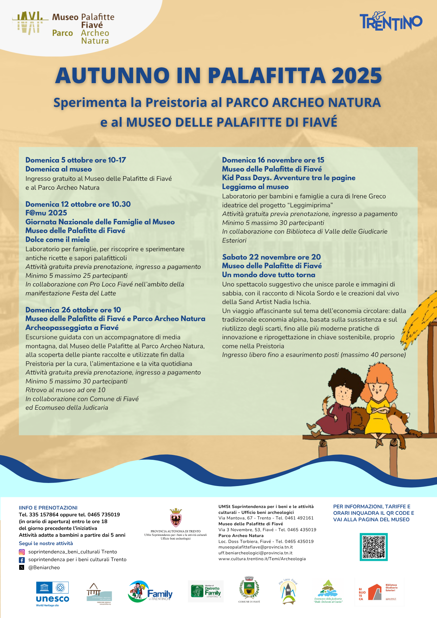 La partecipazione a tutte le iniziative è gratuita previa prenotazione presso il Museo delle Palafitte tel. 0465 735019 (in orario di apertura) oppure al numero 3351578640 mentre l’ingresso è a pagamento. Informazioni sul sito www.cultura.trentino.it/Temi/Archeologia