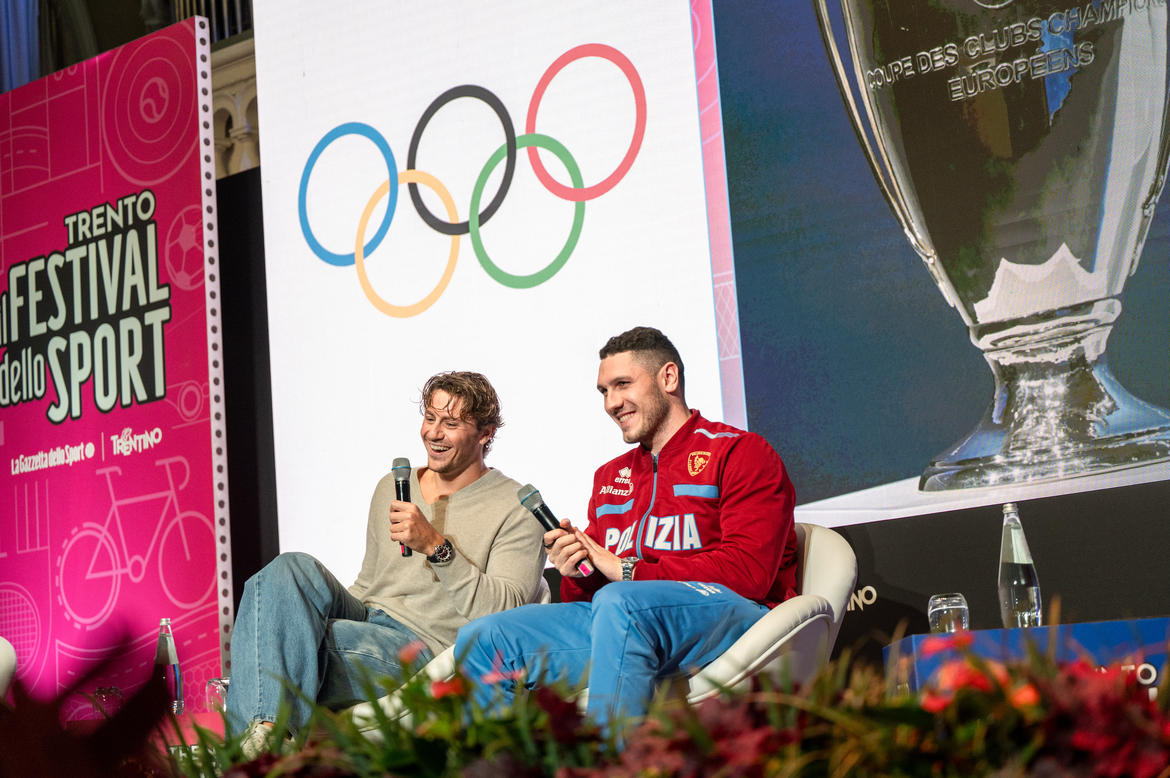 E non sono mancati parallelismi con campioni di ieri e di oggi e con altri sport di cui i due nuotatori sono appassionati. Se Cerasuolo è un calciatore mancato e si identifica nella determinazione di Jannik Sinner, Martinenghi coltiva ancora la sua passione per il basket e si colloca tra Sinner e Alberto Tomba, perché “la serietà è importante, ma ci vogliono anche creatività e spirito di bambini”.