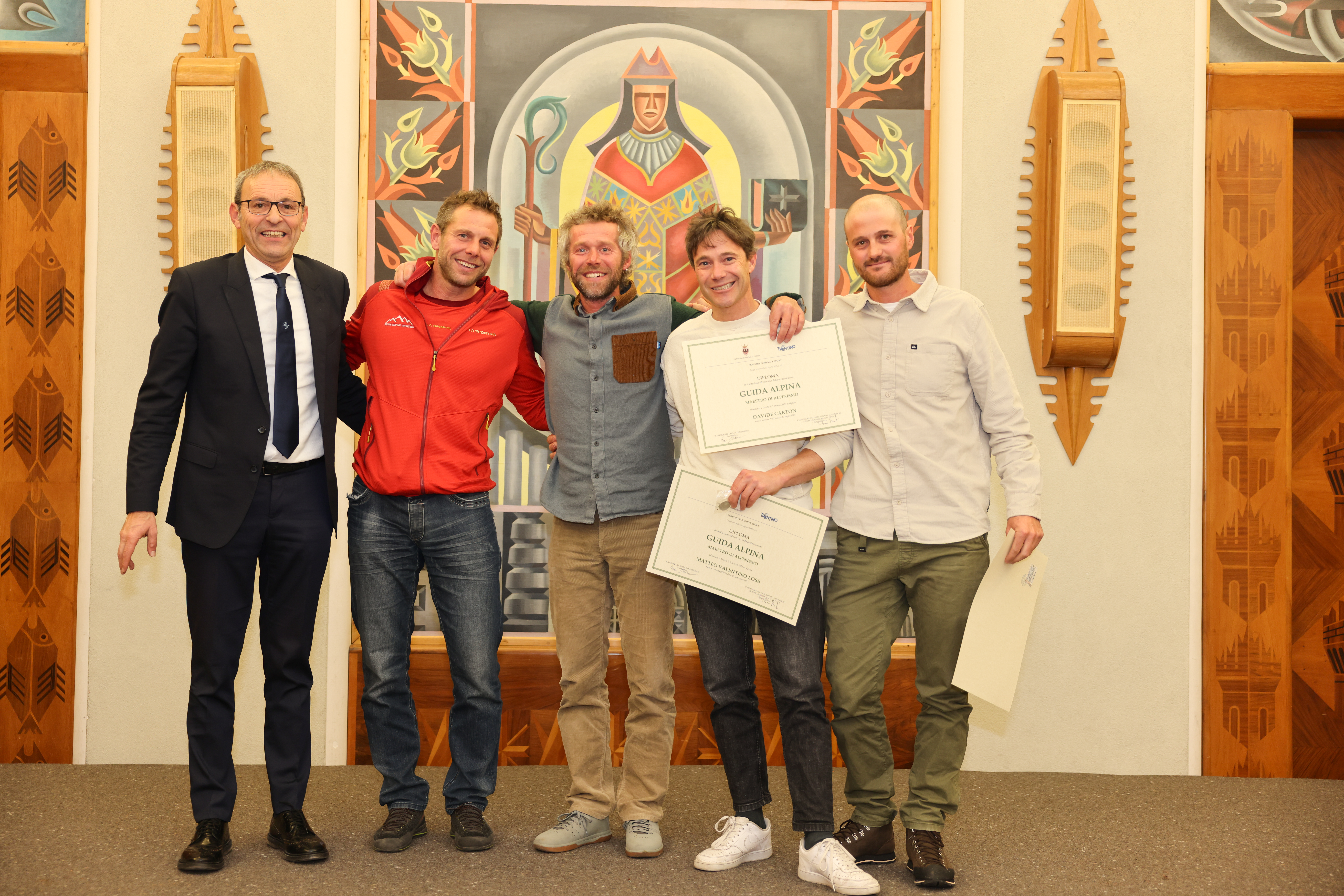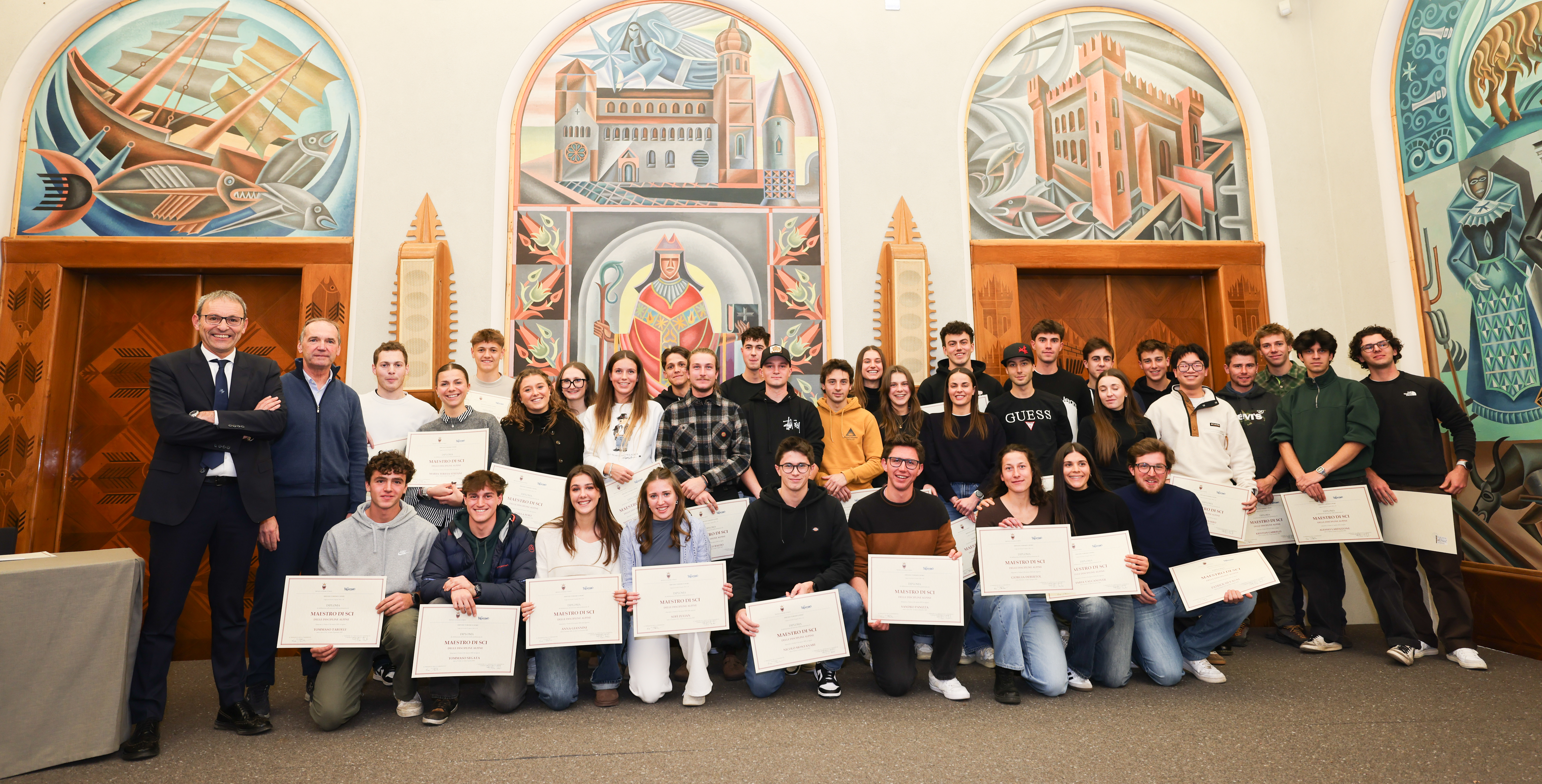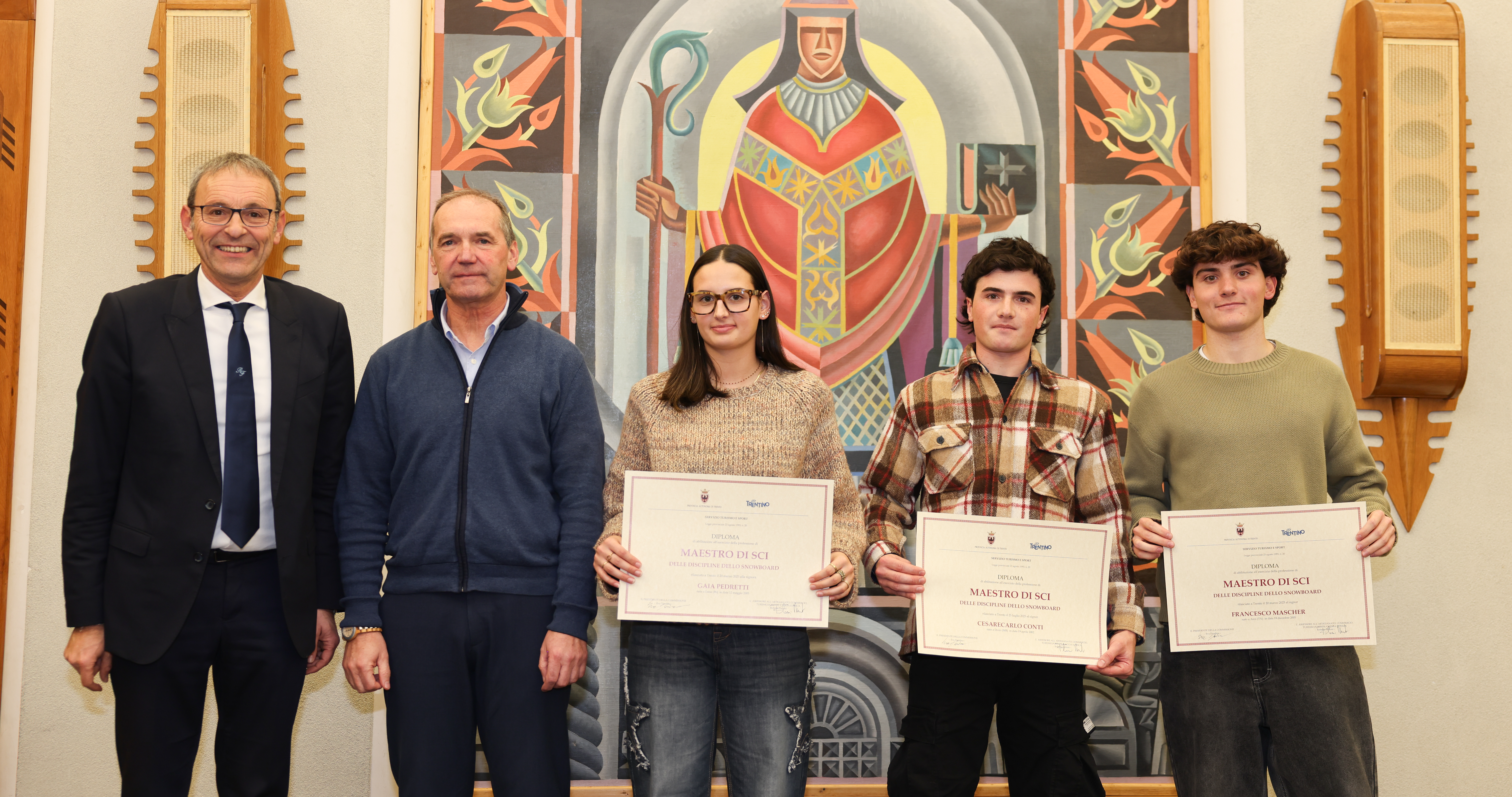 Alla cerimonia, moderata dalla direttrice dell’Ufficio provinciale ricettività e professioni turistiche, Eva Dandrea, sono intervenuti anche il dirigente generale del Dipartimento artigianato, commercio, promozione, sport e turismo, e dirigente del Servizio turismo e sport, Romano Stanchina, il presidente del Collegio dei maestri di sci della provincia di Trento, Mario Panizza, il presidente del Collegio delle guide alpine del Trentino, Gianni Canale, il presidente dell’Associazione maestri di sci del Trentino, Andrea Sini, la presidente dell’Associazione accompagnatori di media montagna, Maria Assunta Stolcis, e la referente dell’Istituto di istruzione “Lorenzo Guetti” di Tione di Trento, Antonella Moratelli. Erano inoltre presenti i componenti delle commissioni esaminatrici per le tre discipline.