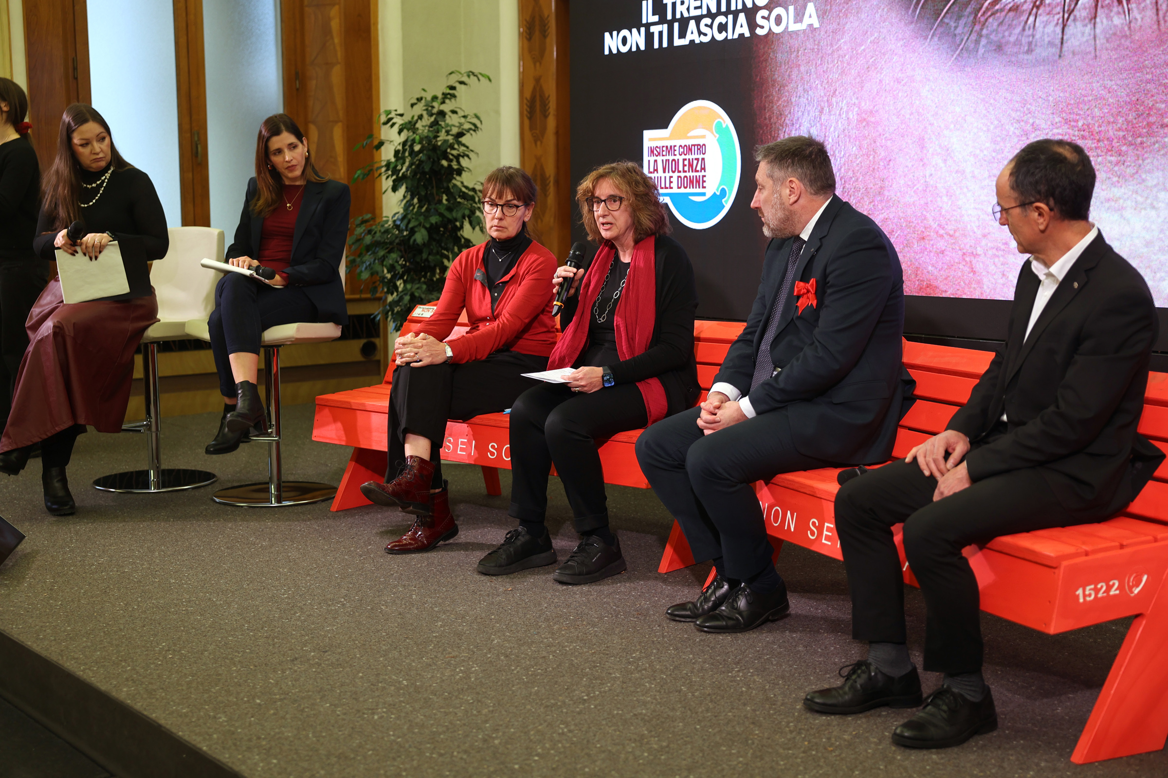 A seguire gli interventi dei rappresentanti delle istituzioni firmatarie del Protocollo di intesa per la prevenzione e il contrasto del fenomeno della violenza di genere in Provincia di Trento che ha l'obiettivo di monitorare e comprendere meglio il fenomeno in Trentino, nonché di sensibilizzare e formare gli operatori, e consolidare una rete di intervento, prevenzione e assistenza per le donne vittime di violenza. Nel dettaglio sono intervenuti: Isabella Fusiello, Commissario del Governo; Nadia La Femina, sostituto Procuratore - Procura della Repubblica di Trento; Orietta Canova, Procuratore - Procura della Repubblica di Rovereto; Nicola Zupo, Questore di Trento; Andrea Pezzillo, Comandante provinciale dei Carabinieri di Trento; Michele Cereghini, presidente del Consorzio dei Comuni; Elena Bravi, direttore per l'integrazione socio sanitaria - APSS; Barbara Poggio, prorettrice alle politiche di equità e diversità - Università degli studi di Trento; Andrea Simoni, segretario generale della Fondazione Bruno Kessler (FBK).