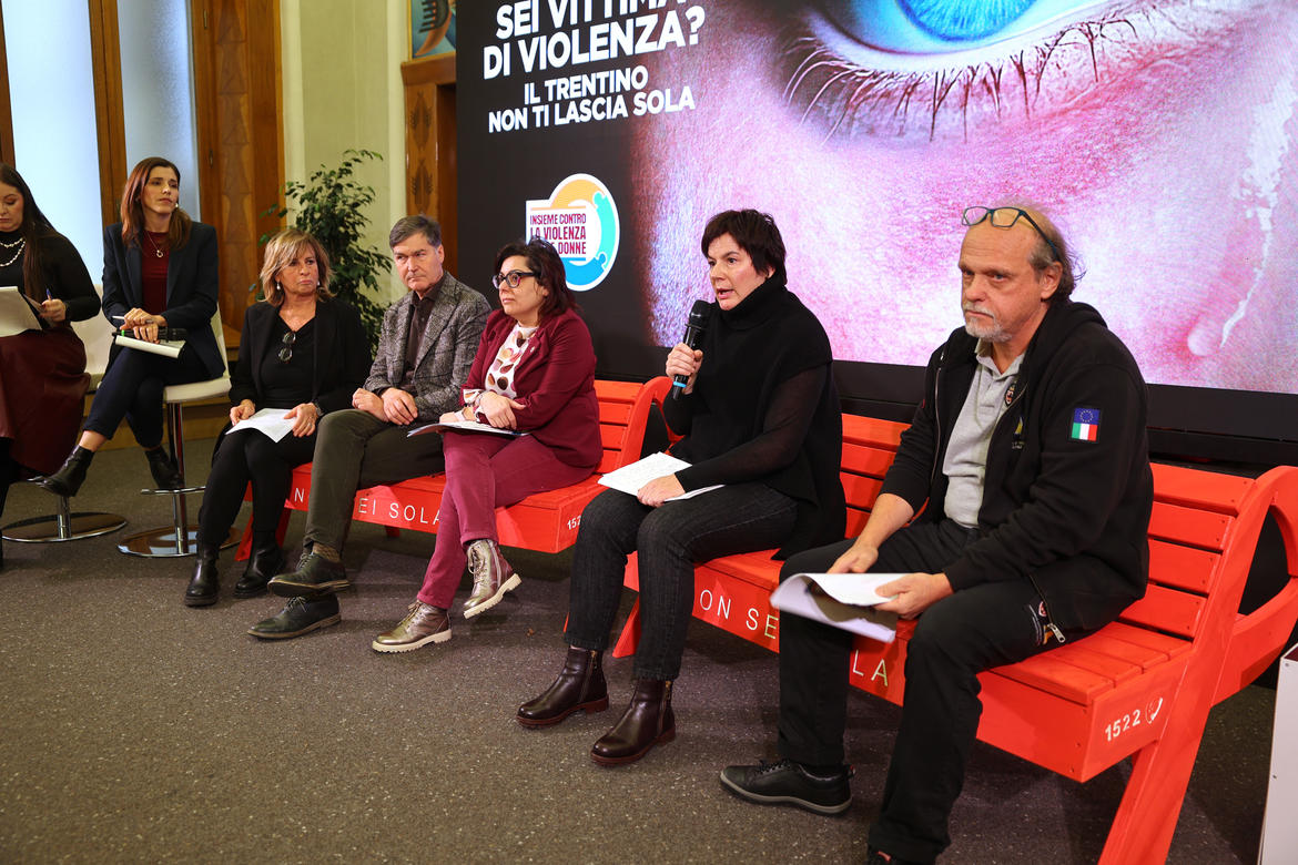 In conclusione anche l'intervento dei rappresentanti provinciali: Ileana Olivo, dirigente del Servizio coesione territoriale, politiche abitative valorizzazione del capitale sociale trentino all’estero, ha presentato le misure abitative a favore delle donne vittime di violenza. Italo Della Noce, direttore Ufficio Centrale Unica Emergenza (CUE) ha presentato l'App 112 Where Are U che consente di chiedere aiuto, ovvero di effettuare chiamate “mute”, segnalando il tipo di soccorso richiesto. Maurizio Mezzanotte, dirigente del Servizio per il sostegno occupazionale e la valorizzazione ambientale ha illustrato l'accordo con il Consorzio dei comuni per il posizionamento delle "Panchine rosse" e l'inserimento nel Progettone di donne vittime di violenza. Laura Pancheri, dell'Ufficio Stampa della Provincia autonoma di Trento, ha presentato il video dedicato alle sedi del Centro antiviolenza e realizzato attraverso il progetto di alternanza scuola lavoro Gio.Co - Giovani Comunicatori, percorso attivato a Formato dall'Ufficio stampa e rivolto alle scuole del territorio. Infine Maria D'Ippoliti, dirigente del Servizio per il personale, ha parlato delle misure per dipendenti vittime di violenza.