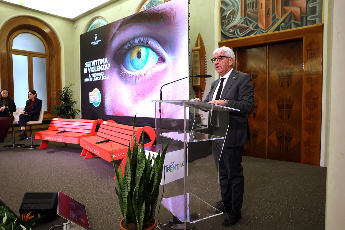 Nel corso della mattinata, dopo l'intervento del presidente Fugatti, sono seguiti i saluti istituzionali del presidente del Consiglio provinciale, Claudio Soini che ha parlato di questo evento come di un "momento di responsabilità condivisa" per "dire no alla violenza contro le donne non solo oggi ma tutti i giorni".