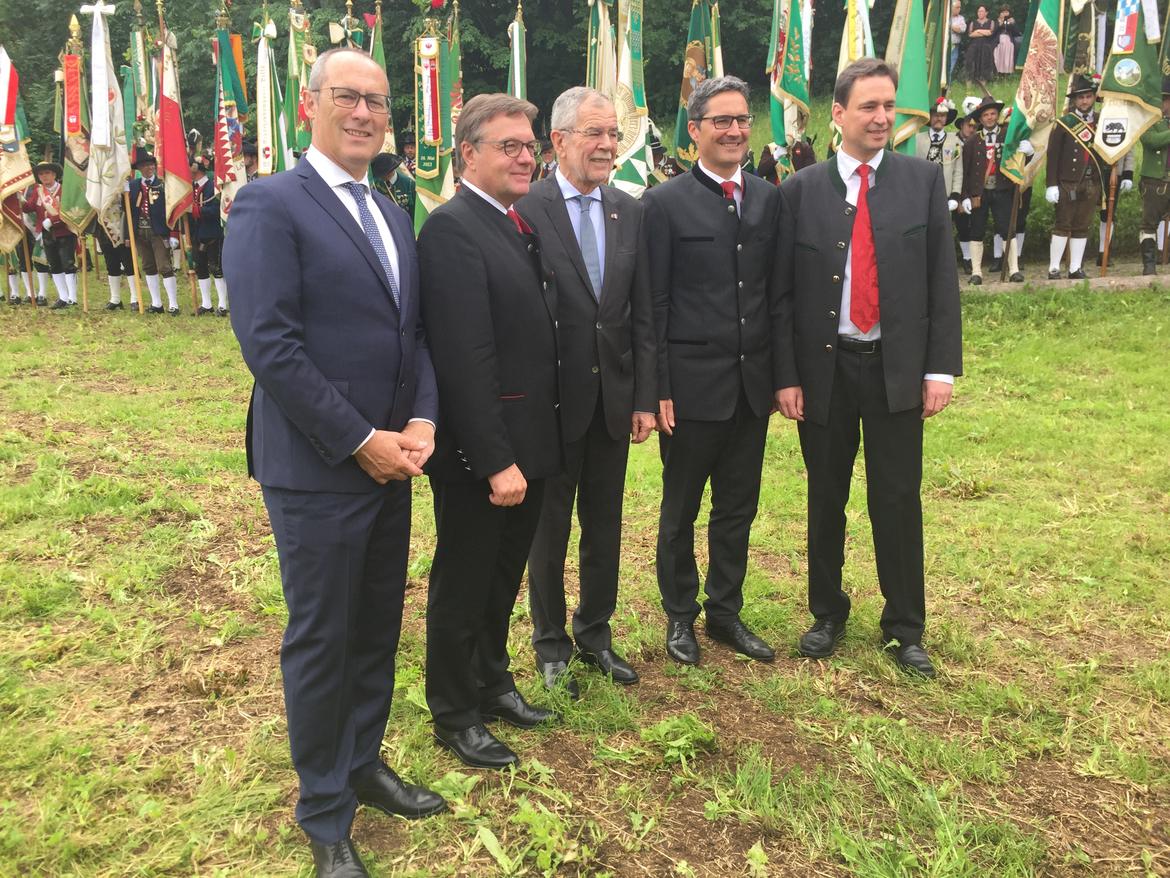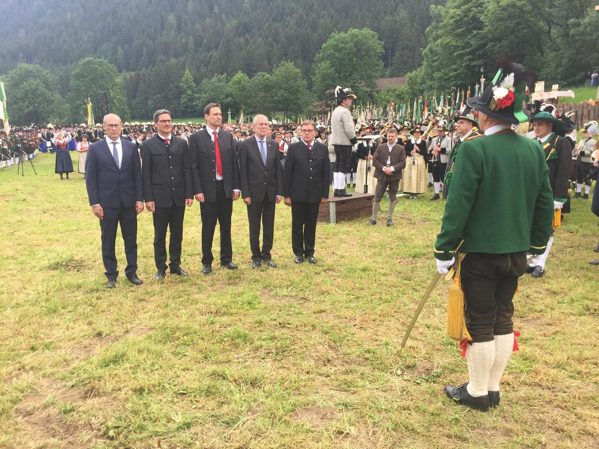 Gli inni del Tirolo e della Baviera hanno preceduto il saluto del sindaco di Mayrhofen, Monika Wechselberger, mentre ai piedi di una grande croce, eretta dagli Schützen di Mayrhofen, si è tenuta la messa da campo, celebrata dall'arcivescovo di Salisburgo, Franz Lackner.