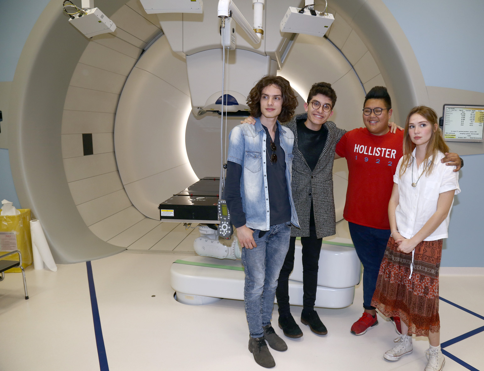 I giovanissimi protagonisti di Braccialetti Rossi hanno seguito con interesse il direttore Amichetti che ha illustrato i macchinari all'avanguardia utilizzati per il trattamento, le procedure di preparazione dei pazienti e i vari ambienti di cura del Centro e hanno portato la loro testimonianza di come una fiction come quella da loro interpretata abbia dato loro una consapevolezza significativa dell'esistenza della malattia e della sofferenza, ma anche dell'importanza che l'amicizia, la solidarietà e persino l'allegria possono avere nell'alleviare momenti così difficili da affrontare per tutti, in modo particolare per i bambini.