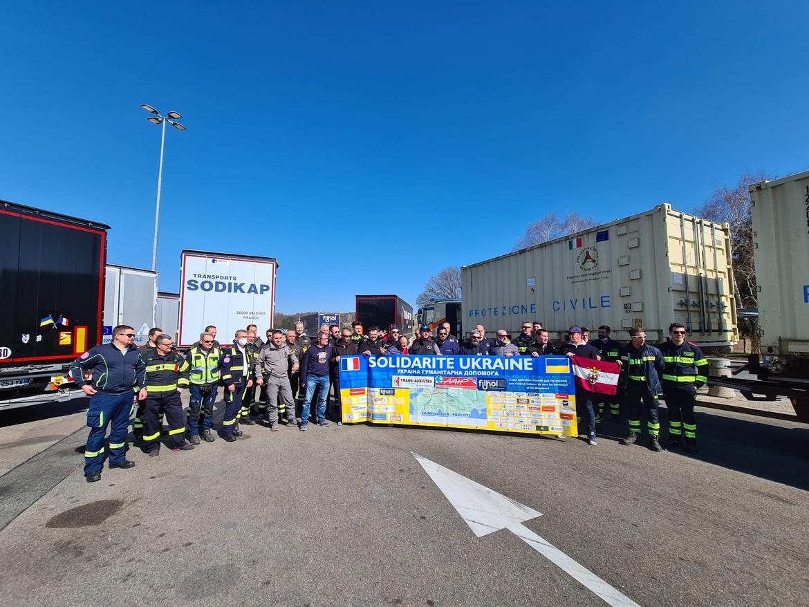 Dopo aver attraversato due confini di Stato (Slovenia e Ungheria), la colonna mobile della Protezione civile trentina e altoatesina raggiungerà in serata Budapest, per la prima notte della spedizione in territorio straniero. Il viaggio che porterà fino in Moldavia i 43 uomini guidati dal capo missione Giovanni Giovannini, è iniziato alle 5 del mattino, al termine del briefing presso il polo della Protezione civile a Lavis. La colonna di 11 tir - accompagnata da alcuni mezzi di supporto e da un’ambulanza - con 18 container di materiale per l’allestimento di un campo di accoglienza per le persone in fuga dal conflitto in Ucraina, ha percorso la lingua di asfalto che costeggia campi e piccoli centri abitati ed a tratti si immerge nella foresta. L’autostrada viene percorsa da decine di mezzi carichi di beni destinati alla popolazione ucraina e ai territori che confinano con il Paese devastato dai bombardamenti. Riconoscere gli autisti in “missione” non è troppo difficile: spesso sulla cabina campeggia la bandiera gialloblu dell’Ucraina in segno di vicinanza. E così nascono incontri nel segno della solidarietà. È accaduto anche durante la sosta per il pranzo, quando un gruppo di 12 vigili del fuoco francesi appartenenti all’associazione umanitaria ‘Aaip’ ha srotolato uno striscione, invitando i membri della spedizione regionale ad unirsi per una foto ricordo. Non poteva mancare la bandiera del Trentino. I pompieri provenivano dalla Corsica ed hanno fatto scalo a Lione. Consegneranno generi di prima necessità al confine tra Ungheria e Ucraina.