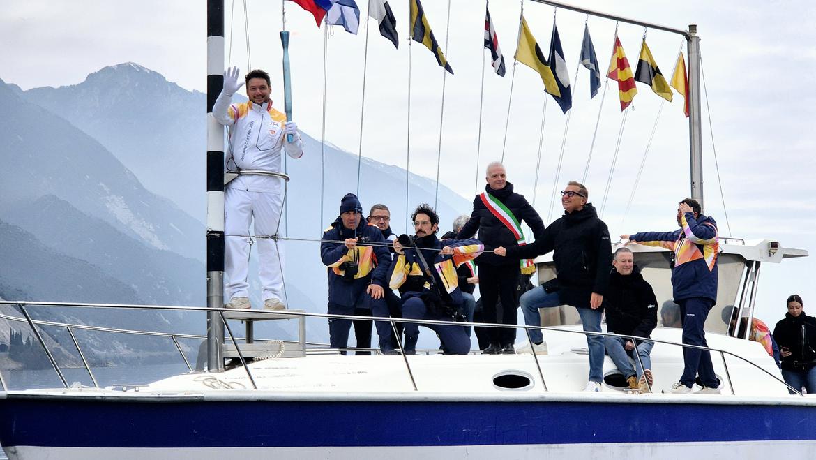 A Torbole, la fiamma è quindi approdata nel porticciolo, per poi proseguire a terra nell’ultimo tratto fino al municipio, offrendo un’ulteriore occasione al pubblico per salutare e celebrare il simbolo dei Giochi.
