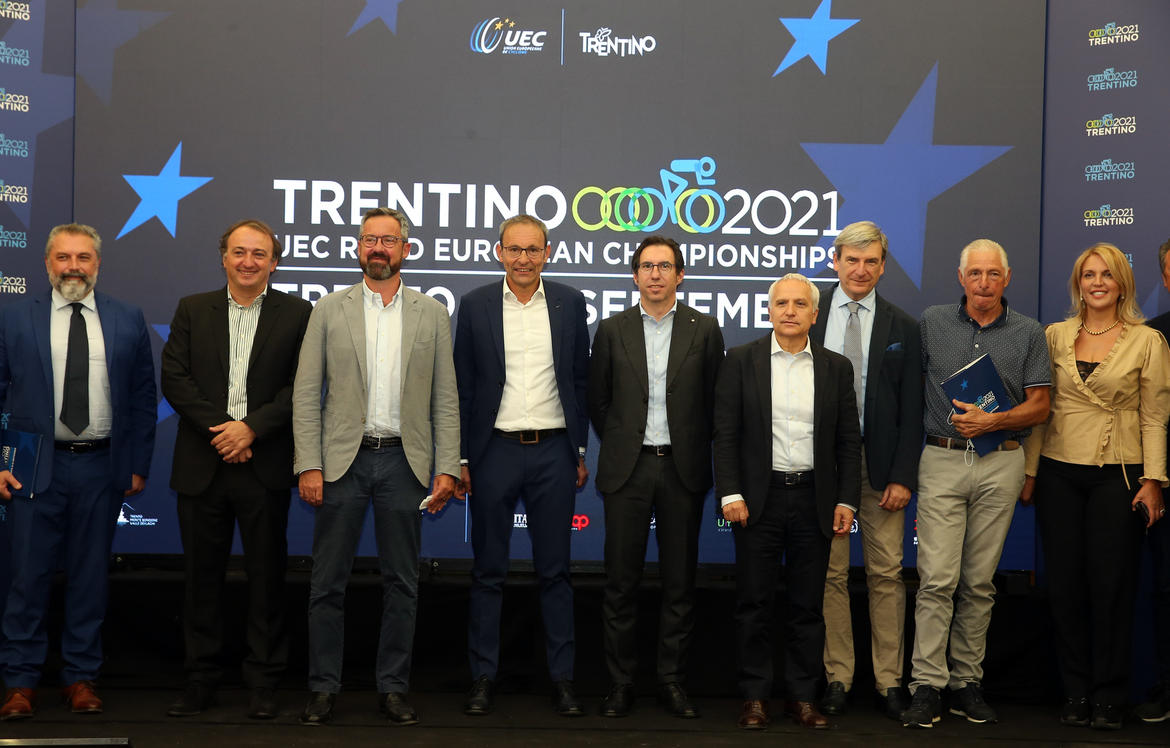Fra gli altri, hanno preso parte alla conferenza stampa Agata Lang, membro della Commissione Strada dell’Unione Ciclistica Internazionale, il sindaco di Trento con l’assessore al turismo e l’assessore allo sport, il presidente dell’Apt Trento, Monte Bondone e Valle dei Laghi Franco Aldo Bertagnolli, il presidente del Comitato Trentino della Federazione ciclistica italiana Giovannina Collanega, il presidente di Trentino eventi sport Renato Villotti, il direttore organizzativo degli Europei Trentino 2021 Maurizio Evangelista, il vice questore vicario Luigi di Ruscio e il responsabile del Dipartimento protezione civile e fauna della Provincia autonoma di Trento Raffaele De Col.