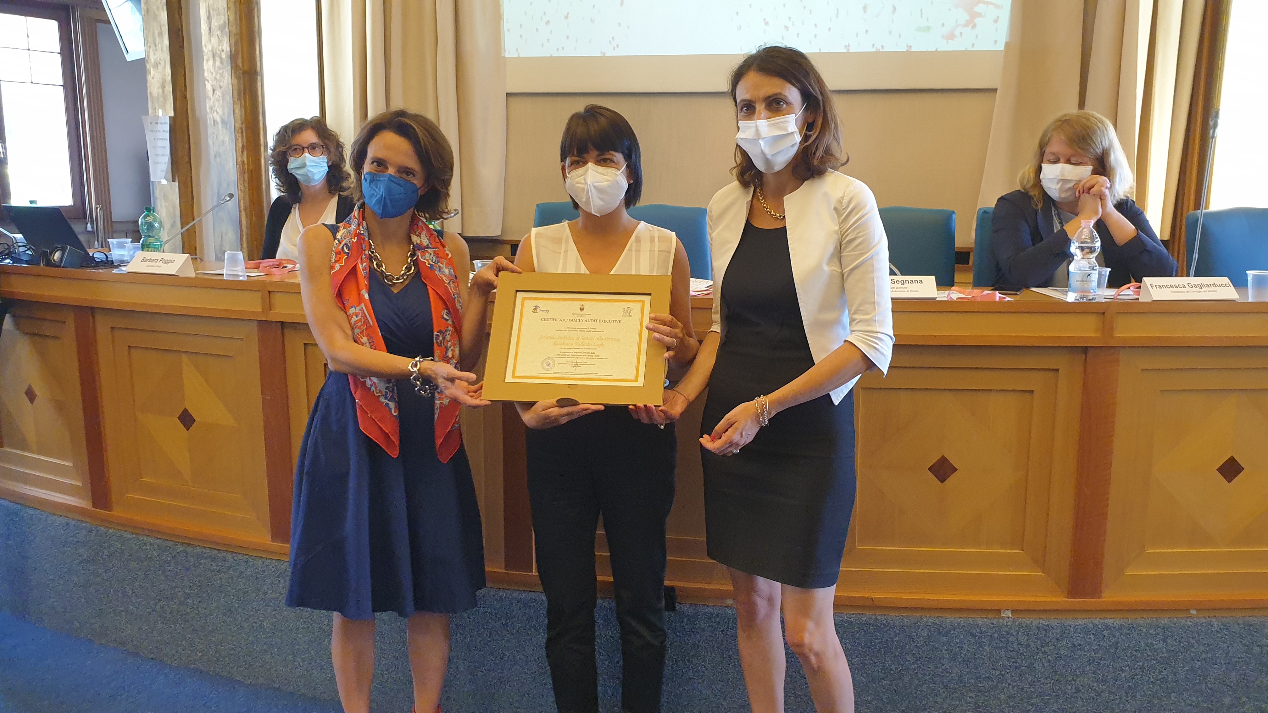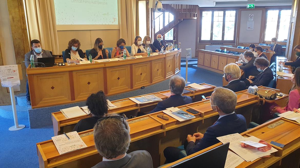 Presente alla cerimonia anche Luciano Malfer, dirigente generale dell'Agenzia per la coesione sociale, la famiglia e la natalità della Provincia autonoma di Trento che ha ufficialmente presentato la decima edizione del Festival della famiglia, che si terrà a Trento dal 29 novembre al 3 dicembre 2021 e avrà come tema: Le “misure” della sostenibilità sociale, economica e demografica nel post Covid19. Politiche e indicatori per la competitività dei territori e la qualità della vita”. "Oggi si chiude una sperimentazione importante sull'Audit con il Dipartimento per le politiche della famiglia della Presidenza del Consiglio dei Ministri – ha detto Malfer - È una collaborazione decennale che vede in questo traguardo non la fine ma un nuovo inizio per aprire altre partnership sul territorio nazionale. Questo percorso ha consentito di tarare lo strumento del Family Audit e dimostrare l'efficacia dello stesso in termini di produzione di benessere per i dipendenti e di valore per le aziende. Inoltre - ha proseguito il Dirigente - l'analisi della "Valutazione di impatto familiare" ha ulteriormente dato conferma dei risultati di qualità che sono stati raggiunti”. La sperimentazione nel triennio è stata effettuata con il supporto specialistico di Tsm.