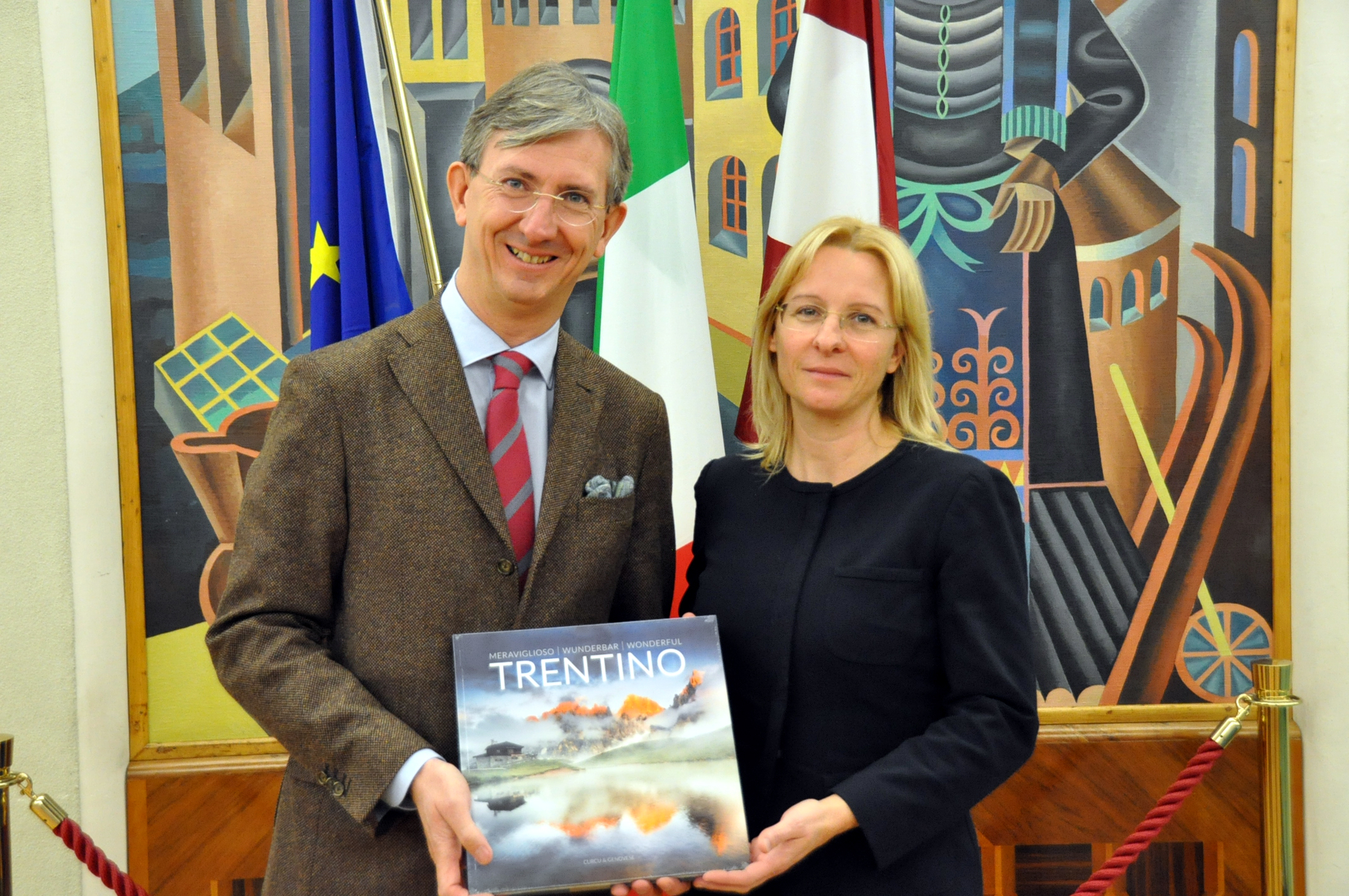 Facilitare una ancor più intensa cooperazione tra i sistemi economici trentino e francese, rafforzare e diversificare i rapporti di collaborazione sia sul fronte dei progetti di ricerca che su quello di cooperazione didattica tra l’Ateneo trentino e gli atenei francesi. Sono stati questi i temi discussi l'altro giorno, durante la gradita visita del Console generale della Repubblica di Francia a Milano, dott. Cyrille Rogeau, che è stato ricevuto presso la Provincia dall'assessora all'università e ricerca Sara Ferrari. Il Console generale, che in Trentino era accompagnato dalla Console onoraria della sede di Trento, Maria Emanuela De Abbondi, si è recentemente insediatosi nella sede di Milano. L'incontro, accanto al rituale scambio di doni, ha offerto l’occasione per presentare alcune delle peculiarità storiche, culturali, economiche ed amministrative del Trentino, nonché per aprire a future possibilità di ulteriori visite ed iniziative comuni.