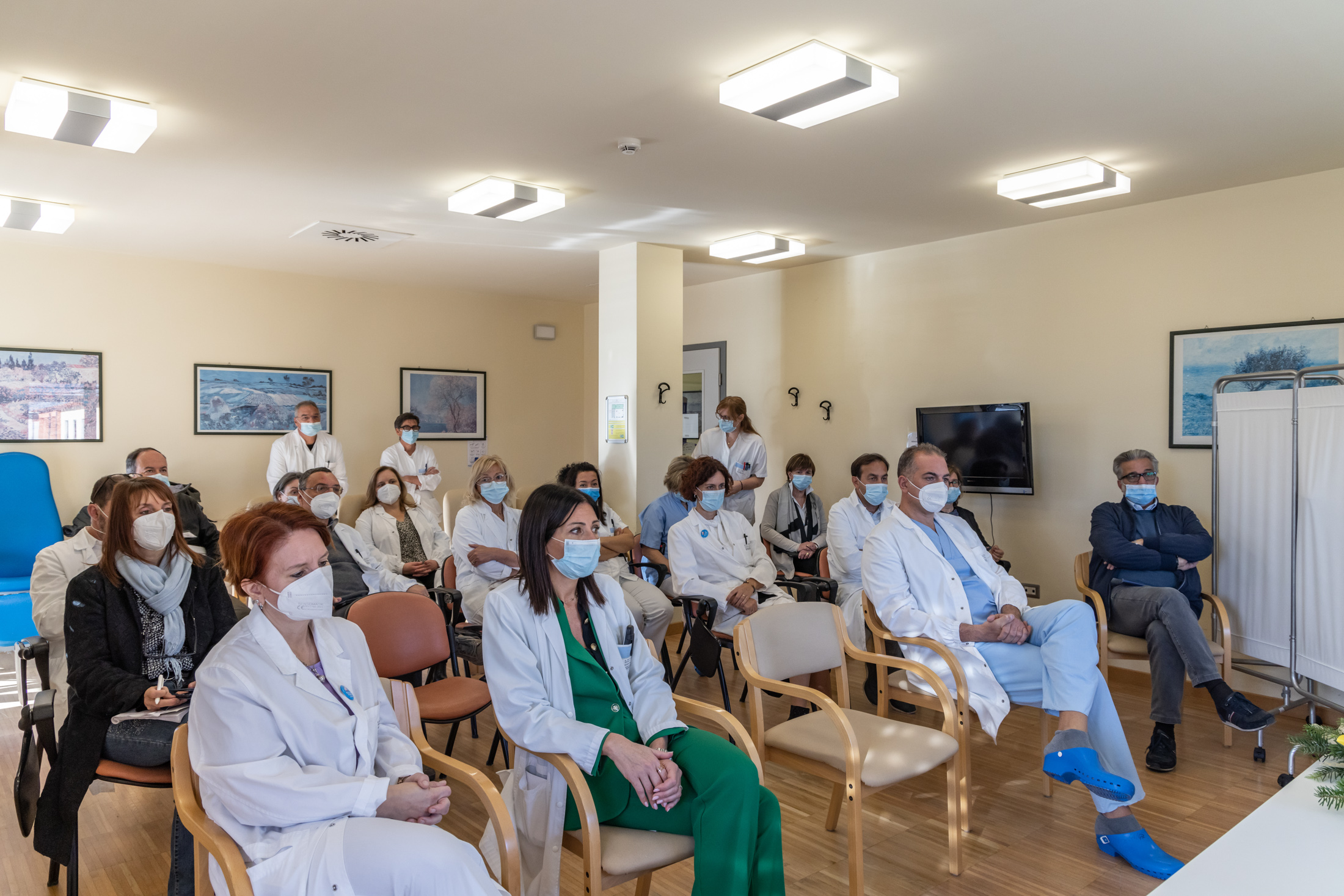 A seguito del trasferimento della Medicina sezione A al 3° piano dell'ospedale, infatti, che è stata oggetto di un primo intervento del Piano di Riorganizzazione della Rete Ospedaliera (PRRO) e recentemente inaugurata, si è liberato il 1° piano dello stesso edificio. Il 26 settembre scorso sono stati consegnati all'impresa Grisenti di Trento i lavori per l'adeguamento dell'Area Funzionale Omogenea di Chirurgia ed Ortopedia: un'area che prevede 8 posti letto di terapia semintensiva, con i requisiti della terapia intensiva. In via ordinaria la nuova unità di terapia semintensiva sarà utilizzata in fase post operatoria. Un ambiente altamente specialistico che consente l'assistenza a tutti i livelli e anche molto funzionale dal punto di vista dell'operatività del personale, la cui responsabilità sarà affidata al nuovo primario di anestesia Michela Zardin, che comincerà la sua attività a Cles la prossima settimana. L'area rappresenterà, assieme a quella delle cure ad alta intensità, un fiore all'occhiello non solo della struttura nonesa, ma della sanità trentina. Come hanno ricordato Benetollo e Brunori, infatti, ma anche alcuni medici che lavorano a Cles e sono intervenuti all'incontro di oggi, alcune aree operative dell'ospedale delle valli del Noce possono essere notevolmente attrattive, offrendo possibilità di crescita professionale, un ambiente stimolante e anche molto sereno dal punto di vista dei rapporti umani. Tra queste, l'area chirurgica - che ha registrato nel 2021 un numero di interventi maggiore rispetto al 2019, anno pre-covid - e la dialisi, con una struttura altamente specializzata e in grado di accogliere anche un grande numero di turisti che necessitano di questo servizio, favorendo la mobilità di persone che altrimenti sarebbero costrette a curarsi solo vicino a casa. Come è stato detto nell'occasione dell'incontro, è importante rilevare che, oltre alle problematiche, legate anche alla natura stessa di una struttura ospedaliera che è estremamente complessa, l'ospedale di Cles come altre strutture sanitarie trentine, possono contribuire a evidenziare quanto c'è di positivo da tanti punti di vista: negli aspetti organizzativi e gestionali, ma anche in quelli scientifici e tecnologici, per l'alta specializzazione delle cure offerte anche da un ospedale di valle.