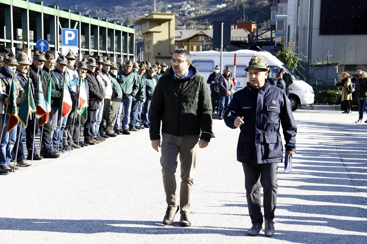 Il presidente Fugatti e il vicepresidente Tonina oggi con le penne nere che si sono ritrovate in assemblea “in presenza”. “Solidarietà, il miglior esempio per i giovani”