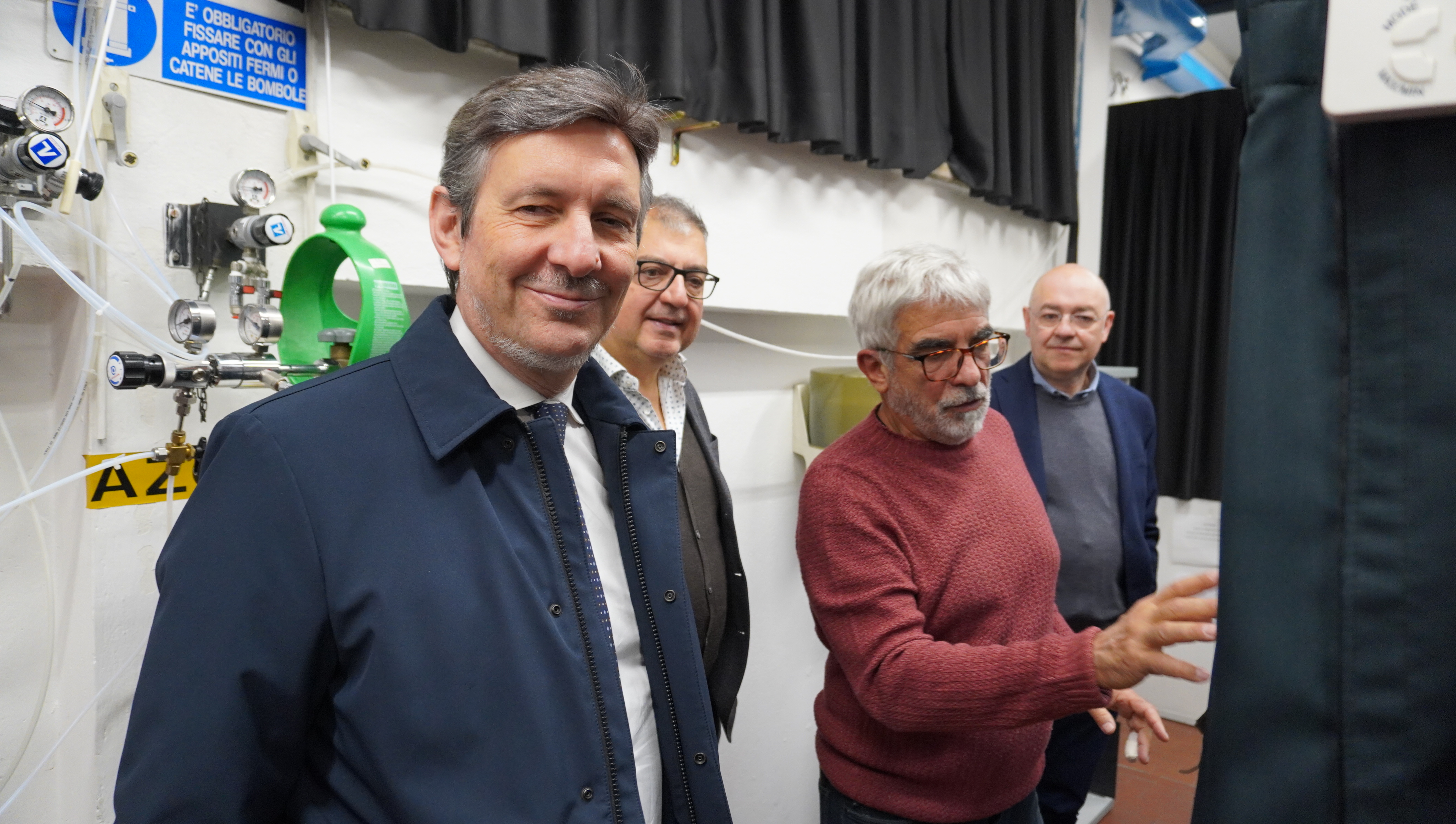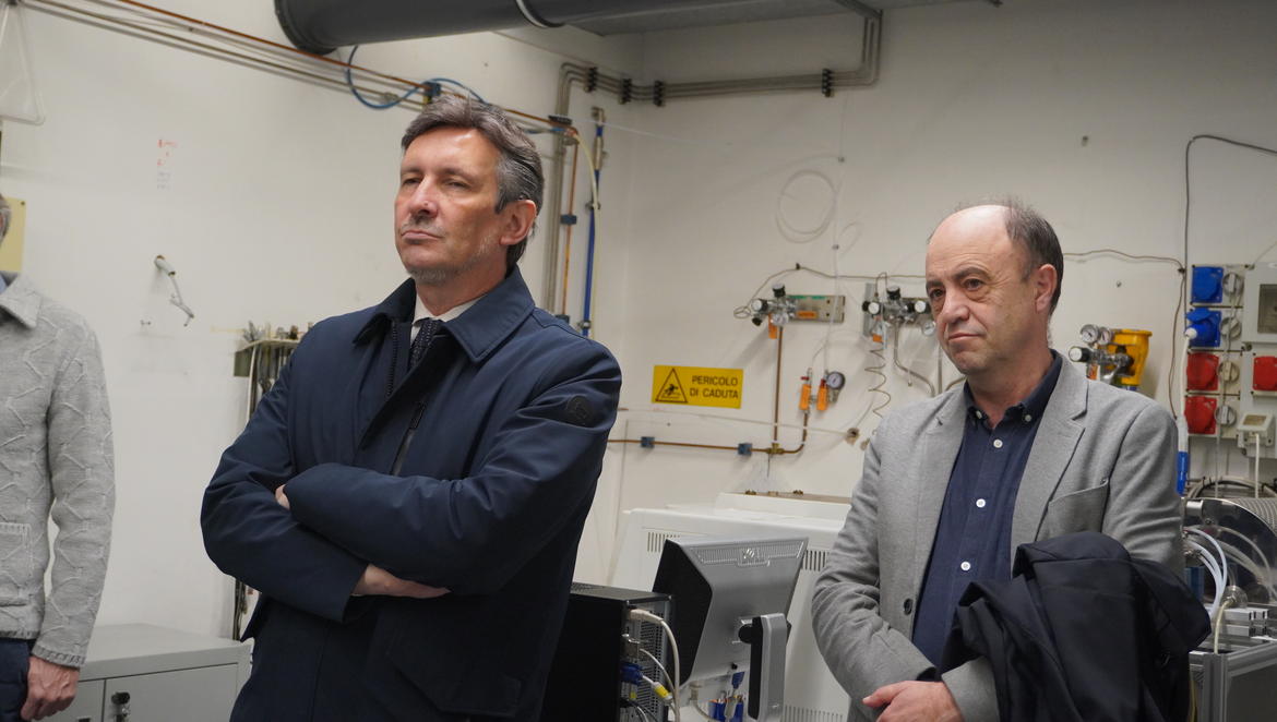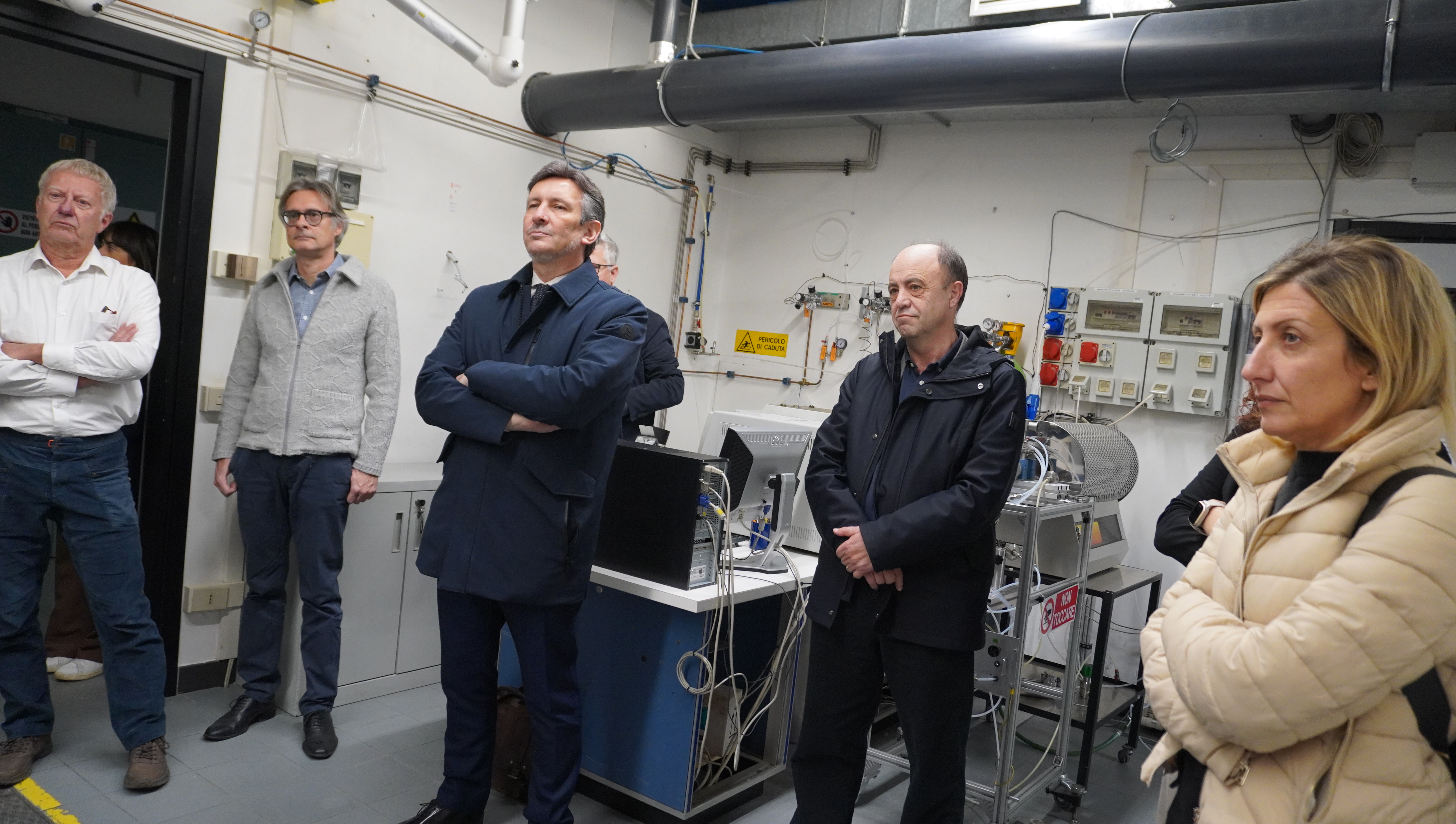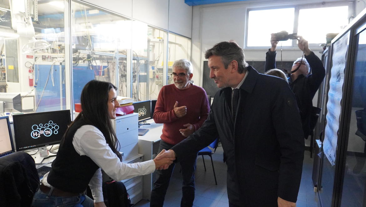 Hanno accompagnato il vicepresidente Spinelli alla visita il rettore dell’Università degli studi di Trento, Flavio Deflorian, il direttore vicario del dipartimento di Fisica, Roberto Sennen Brusa e Matteo Calandra Buonaura, referente scientifico della visita. Presenti anche Paolo Tosi e Luca Matteo Martini, docenti responsabili del Laboratorio di fisica atomica e molecolare, Vincenzo Sglavo, Luca Fiori, Michele Orlandi, docenti responsabili di attività nel progetto H2@TN, Eleonora Cordioli, ricercatrice del Centro Sustainable Energy della Fondazione Bruno Kessler.