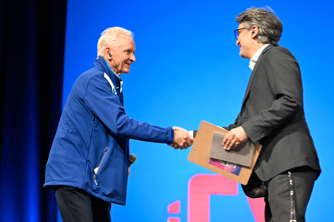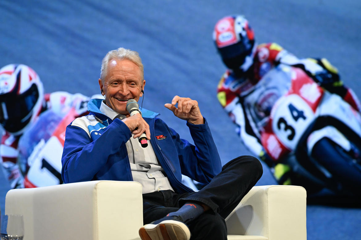 26 maggio 1991 Hockenheim: la staccata e il sorpasso su Wayne Rainey. Una sequenza leggendaria che scorre sul grande schermo del teatro e mette ancora i brividi. Un gioco di prestigio, una magia, un colpo di genio. Come nasce questo momento? “Dalla volontà e dalla determinazione di vincere. Sapevo che Wayne poteva avere la meglio ed è per quello che ho mantenuto la traiettoria destra. Se mi avesse sorpassato avrebbe vinto lui. Quando mi ha affiancato era disorientato, non pensava di trovarmi lì. Ha frenato un secondo o quasi prima di me; ho dovuto spostarmi per non centrarlo e così riprendere il controllo della moto. Anche dopo anni di gare è sempre difficile sapere cosa fare in certi momenti.” Vista oggi si può dire fosse la cosa più giusta da fare tra le più sbagliate.
