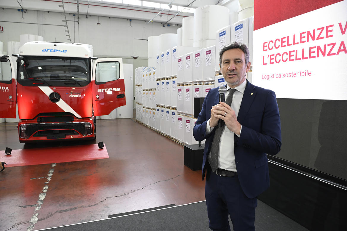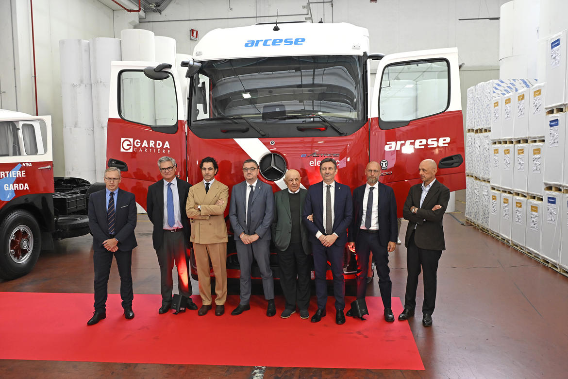 Come spiegato durante la presentazione, la partnership fra Cartiere e Arcese è di lunga data: risale alle origini del gruppo di trasporti arcense, nel 1966, e si è consolidata nel tempo. Oggi Arcese e Cartiere possono contare su 13.000 navette all’anno, un magazzino di 35 mila metri quadrati e una lavorazione di 45 mila tonnellate di carta. Sugli oltre 14 mila viaggi in uscita, Arcese ne gestisce circa il 50%. Il nuovo mezzo, fornito da Mercedes, è fra i primi camion elettrici introdotti in Italia. Si tratta di un veicolo innovativo e particolarmente avanzato; grazie alla breve tratta tra Arco e Riva del Garda, garantisce un’autonomia fino a 14 giorni con una sola ricarica. È a zero emissioni, a basso impatto acustico – caratteristica particolarmente apprezzata in zone abitate come quelle dell’Alto Garda – e coprirà circa il 15% dei trasporti.