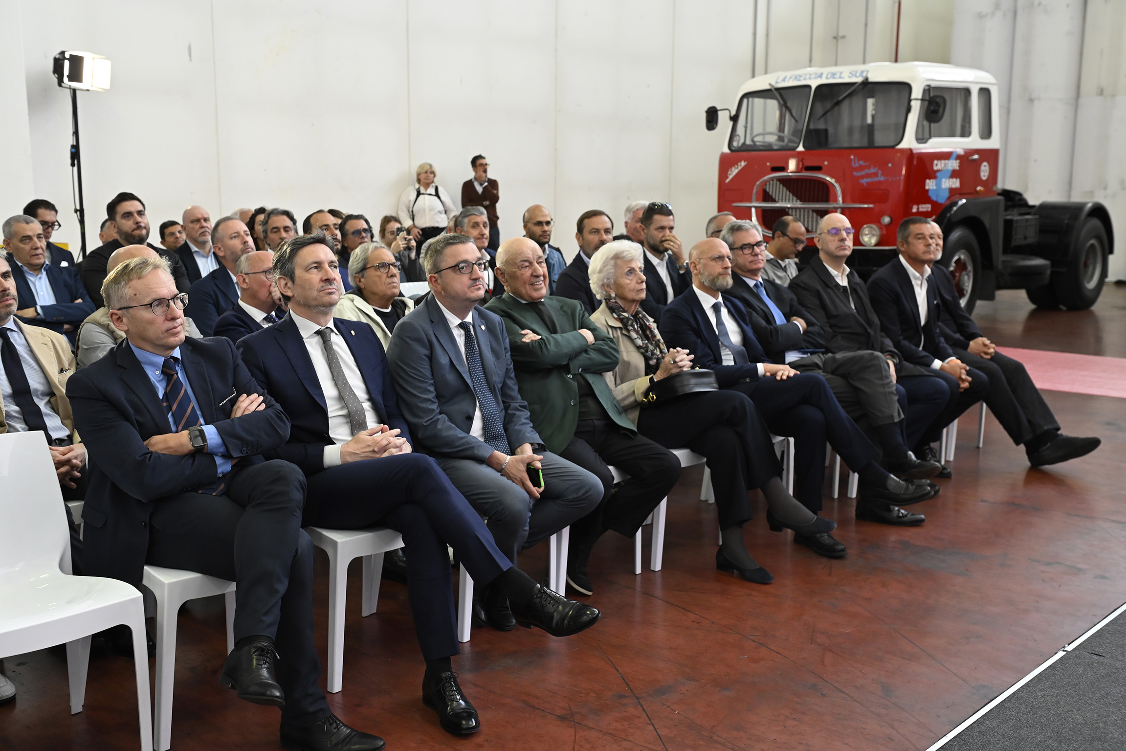 Accanto ai vertici della Provincia, vi erano sindaci e amministratori del territorio, rappresentanti delle realtà industriali dell'Alto Garda, nonché i vertici di Arcese, ovvero il ceo Matteo Arcese con il papà Eleuterio, Corrado Lignana responsabile della Business Unit di Cartiere del Garda con il direttore dello stabilimento rivano Antonio di Blas, nonché Maurizio Pompei presidente e ceo di Daimler Truck Italia - Mercedes-Benz.