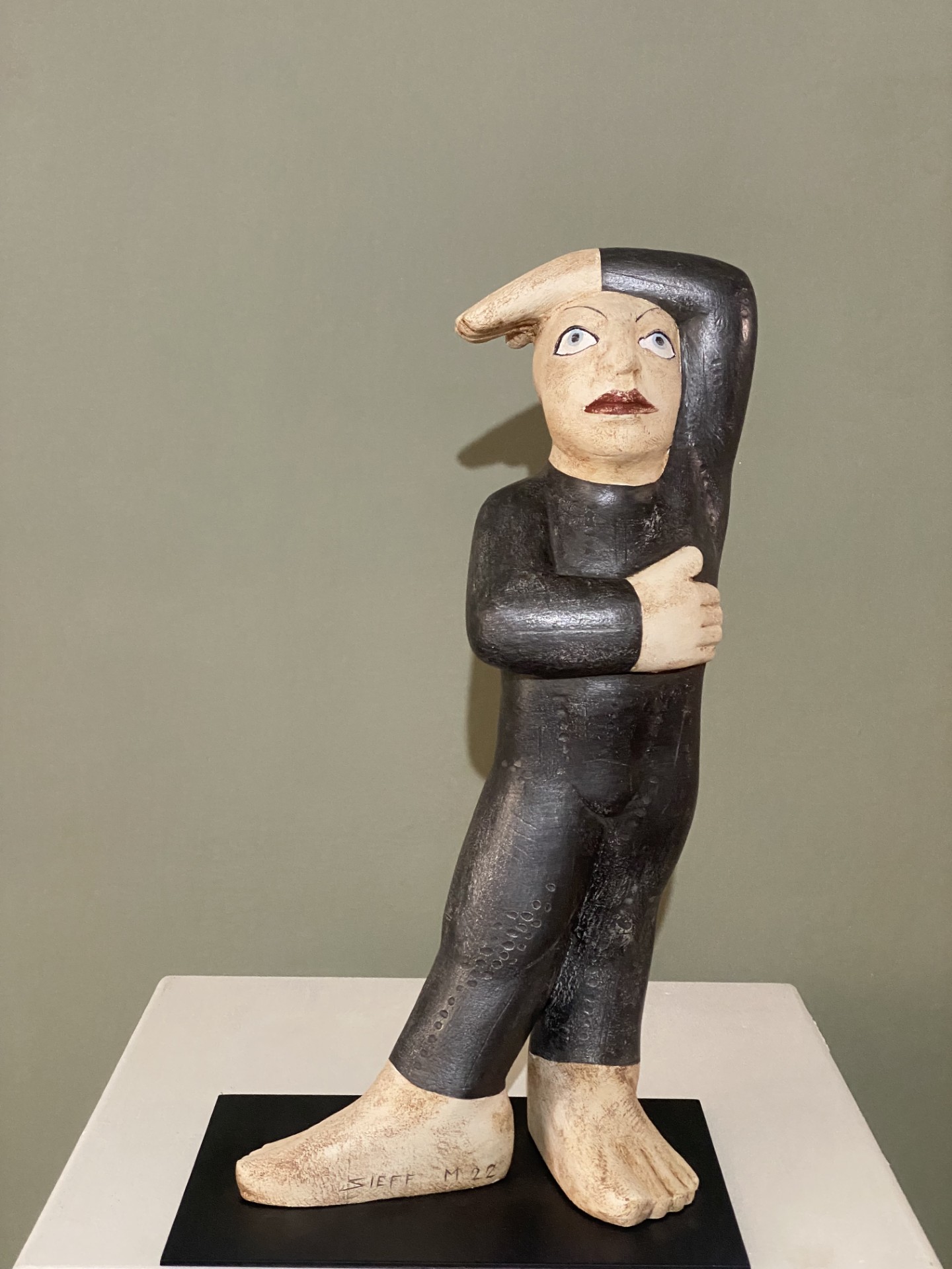 Matthias Sieff. Nato a Cavalese nel 1982, risiede a Mazzin (Tn), tra le Dolomiti della Val di Fassa. Ha conseguito il diploma di Maestro d’Arte, di Scultore del legno e la Laurea in Arti Applicate. Si è formato all’Istituto d’Arte di Pozza di Fassa, alla Scuola per aspiranti scultori a Selva di Val Gardena, seguendo anche i corsi serali di plastica e disegno con il professor Tone Da Cudan e infine all’Università di Arti Applicate di Vienna, sezione scultura, seguito dalla professoressa Gerda Fassel.