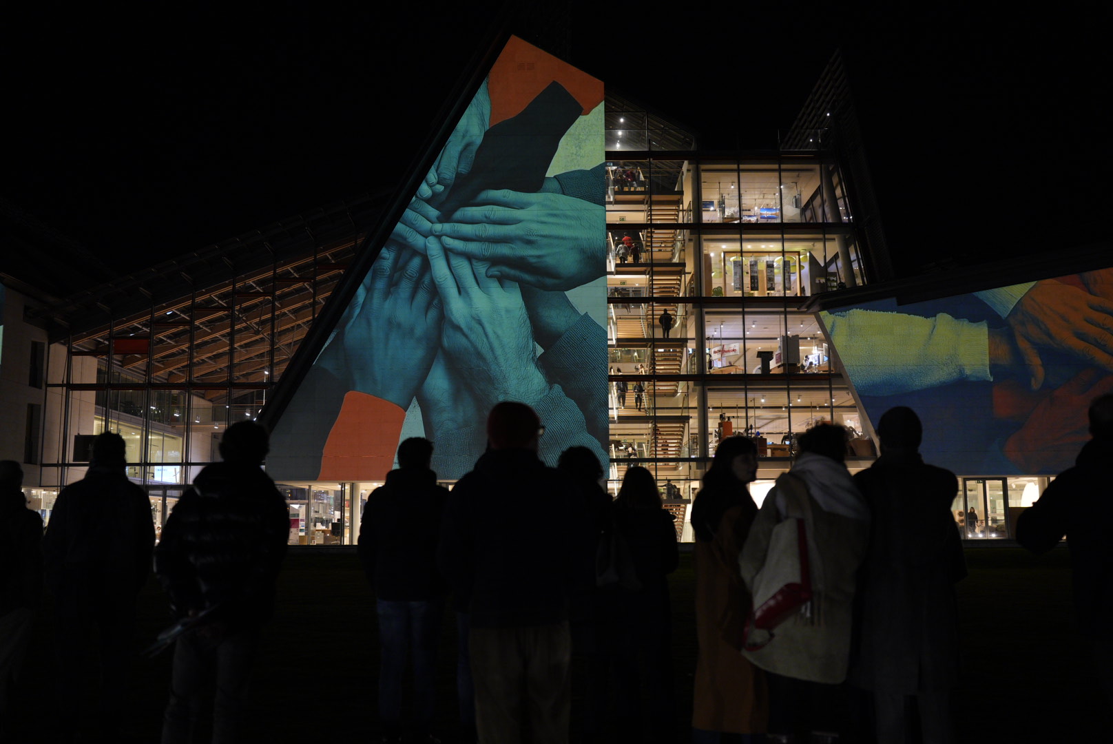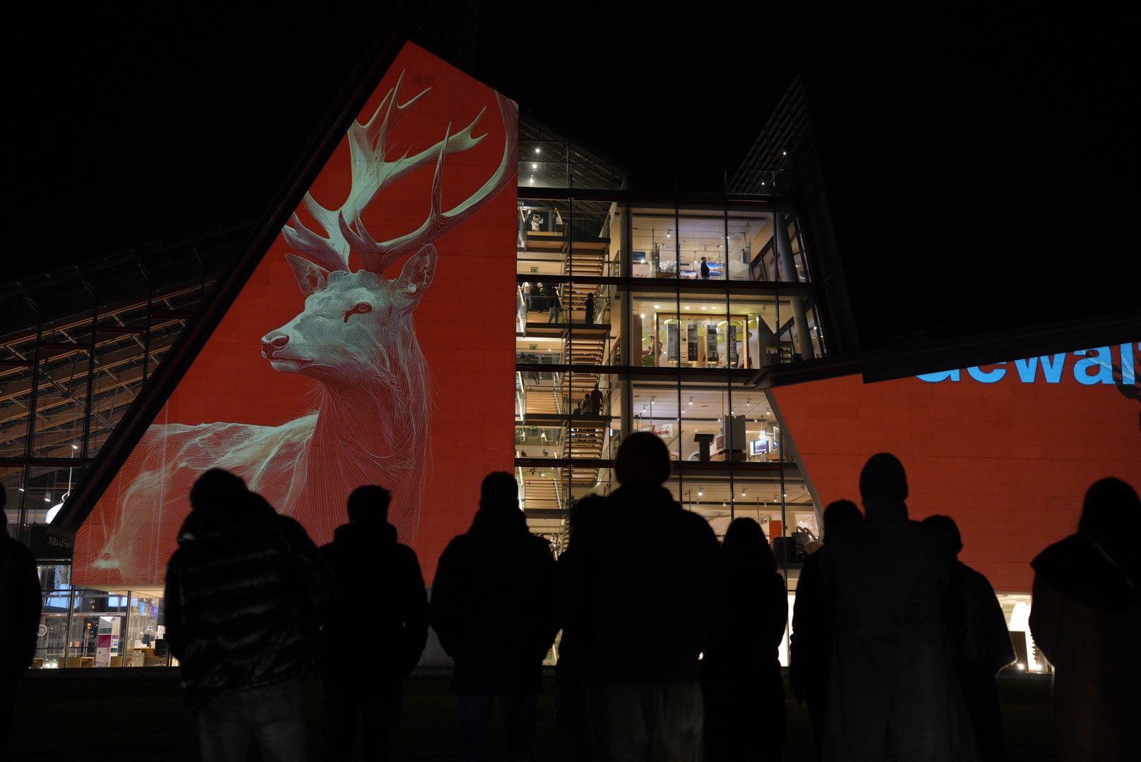 Per tutta la durata della mostra (fino al 15 marzo 2026) ogni giorno dalle 17.30 alle 20.00 verrà proiettata sulle “vele” della parete esterna del museo che affaccia sul giardino delle Albere una proiezione immersiva. Lo show audio-visivo di sette minuti restituisce in modo originale l’evoluzione dalla pratica sportiva con immagini che fanno da ponte immaginifico e narrativo tra le due mostre temporanee: In vista dello scatto (dal 7 dicembre al 15 marzo 2026) e Oltre il traguardo. La scienza che muove lo sport (dal 1° febbraio al 27 settembre 2026).