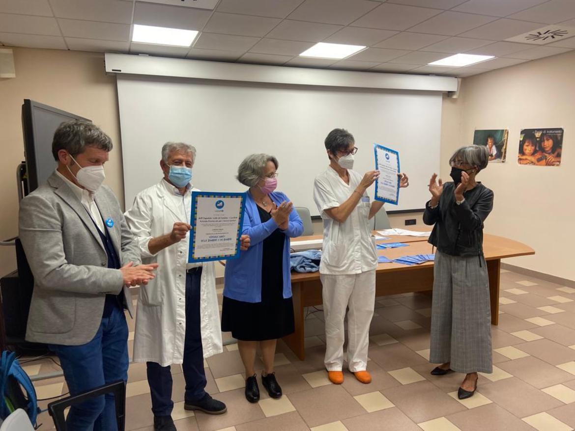 Infine la consegna della Pergamena “Ospedale Amico delle Bambine e dei Bambini” a cura di Elise Chapin, del Programma Insieme per l’Allattamento UNICEF Italia, e delle Pergamene alle "Mamme Peer" da parte di Chiara Martinelli dell'Agenzia per la coesione sociale.