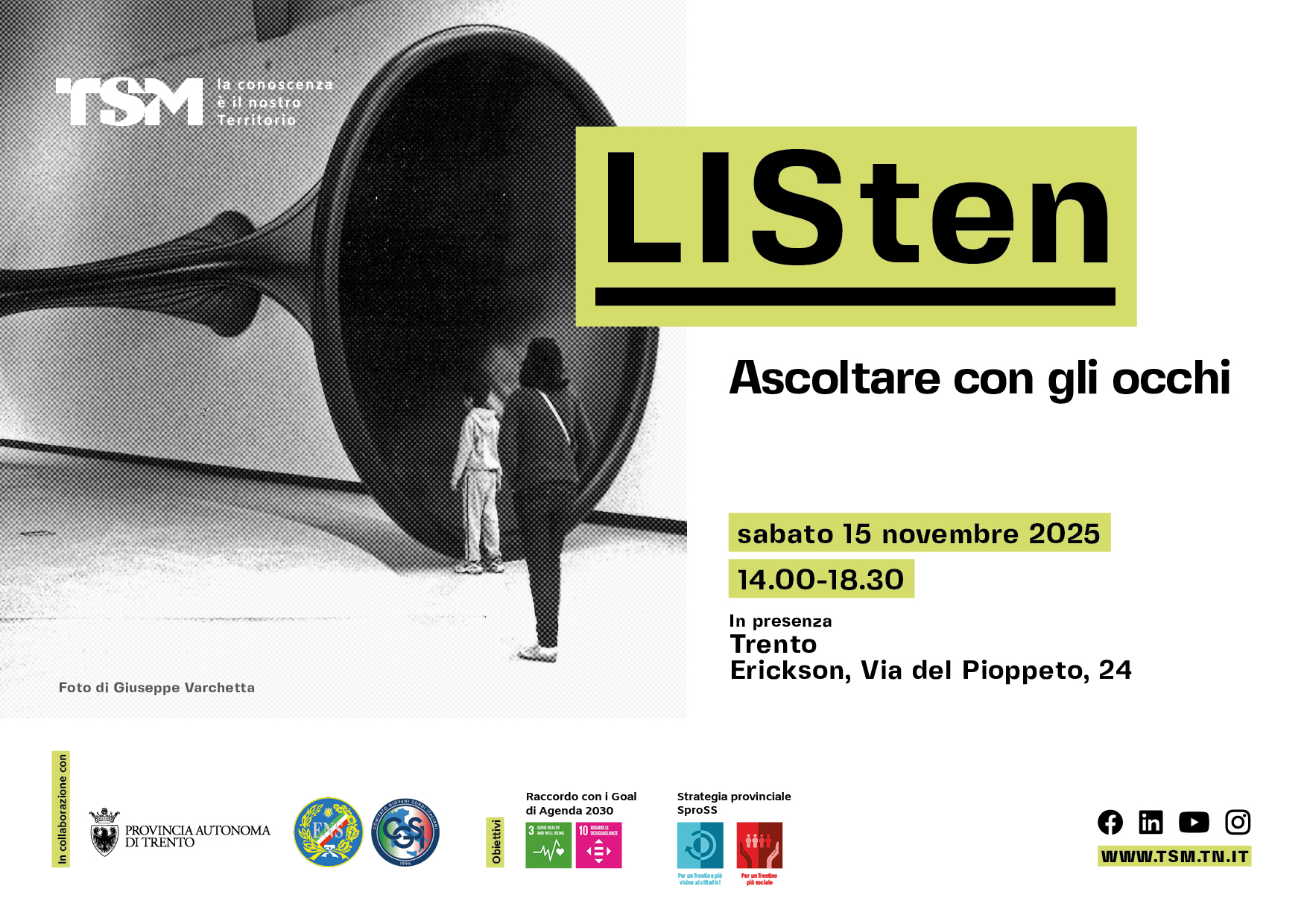 Qui tutte le informazioni sul programma e le modalità di iscrizione: https://www.tsm.tn.it/attivita/listen-ascoltare-con-gli-occhi/