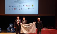 In apertura del convegnoGiuseppe Massazza in rappresentanza della Fondazione Milano Cortina 2026 e Tito Giovannini responsabile del Coordinamento olimpico provinciale hanno consegnato al direttore generale dell’Azienda sanitaria universitaria integrata del Trentino, Antonio Ferro, la bandiera olimpica consegnata a tutti gli ospedali coinvolti nei Giochi invernali.