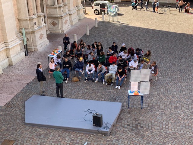 Le altre iniziative in piazza S. Maria Maggiore, durante tutta la giornata, coinvolgeranno i passanti e tutti gli interessati in laboratori per grandi e piccini ed esposizioni di materiali riutilizzati e riciclati (legno, vele di barche e scarti industriali di stoffe, gomme de camere d’aria, videogiochi, …), con la possibilità di sperimentare il forno sociale e la macchina trasforma-plastica, di degustare la cola Ciacola e di conoscere il lavoro di persone con disabilità, volontari e richiedenti asilo impegnati in un progetto di welfare generativo che, oltre alla vendita dei prodotti agricoli realizza prodotti trasformati (succhi, confetture, tisane, crauti, sciroppi…).