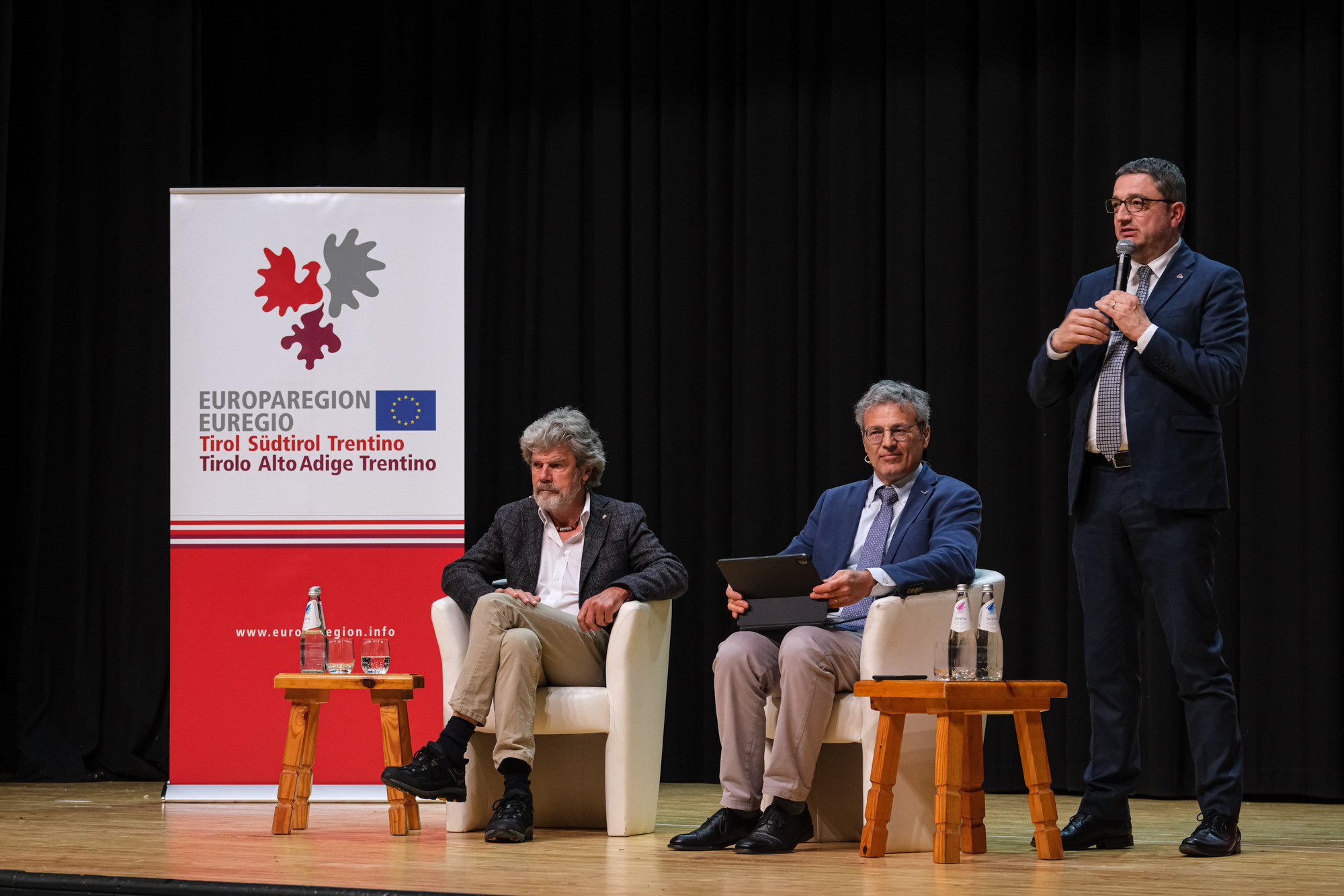Reinhold Messner, primo alpinista che è riuscito a salire tutti "gli 8.000”, è colui che ha portato per il mondo la nostra terra, la nostra immagine e il nostro carattere. Adeguate ed innegabili competenze per dare una giusta lettura al percorso dell'Euregio, nato ufficialmente nel 2011 e che si trova oggi a vivere una maturità tra la storia passata e la contemporaneità sempre più contaminata da problematiche future.