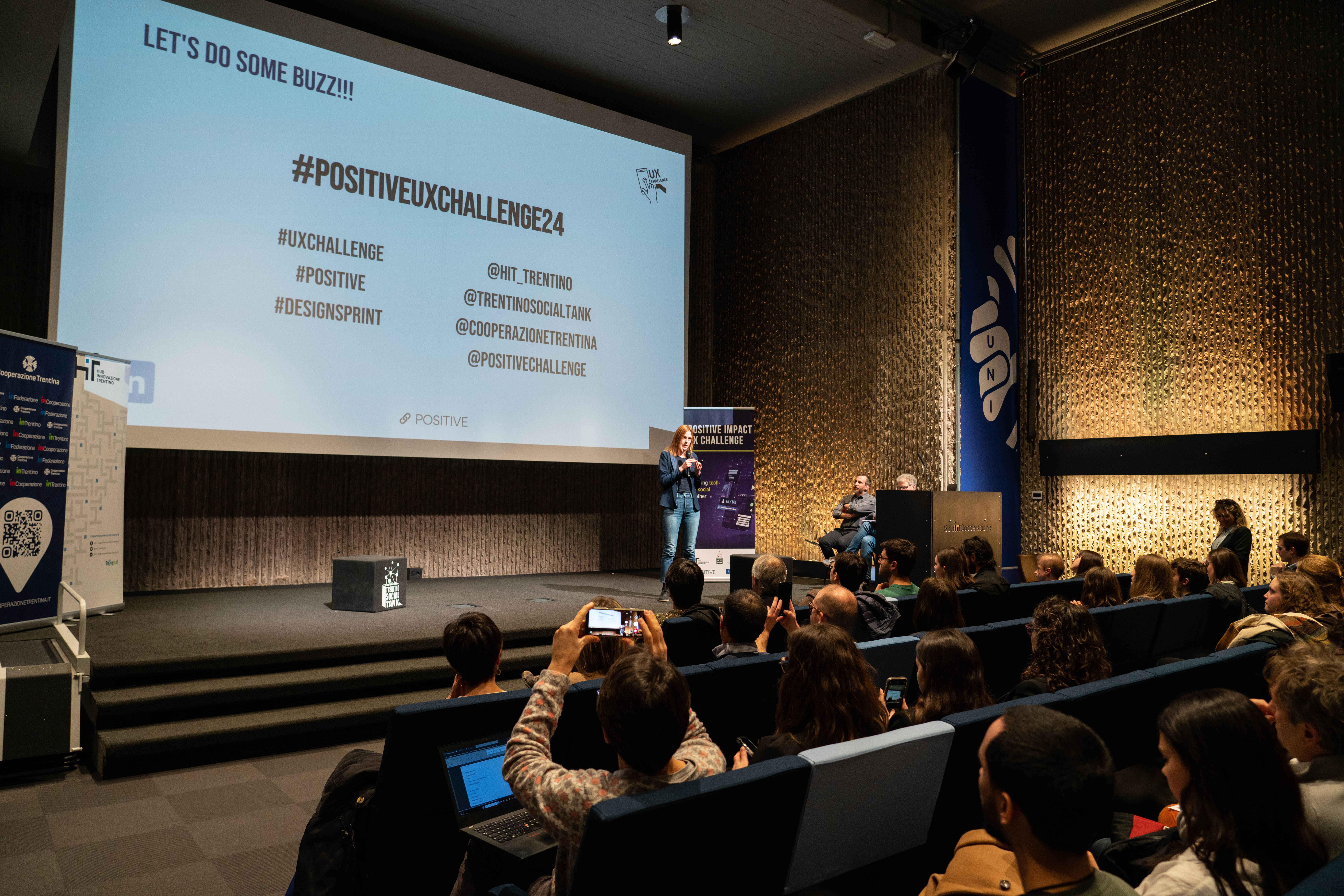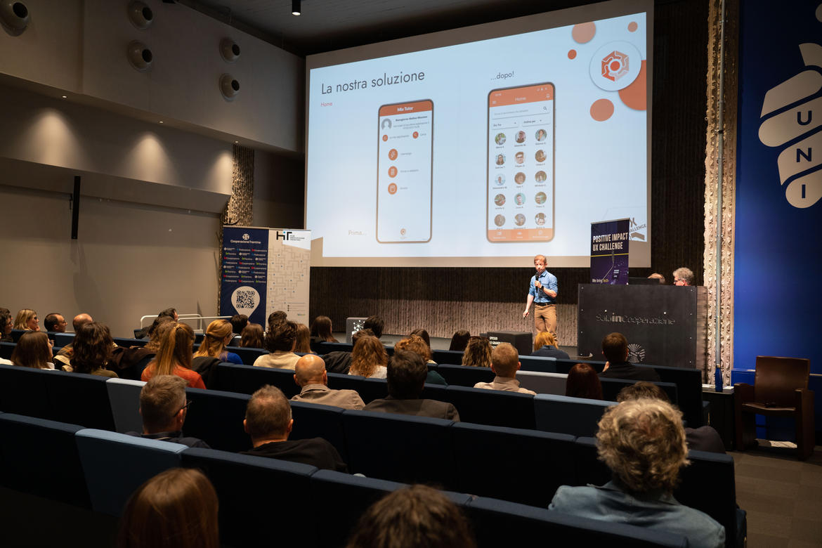 Durante la UX Challenge, organizzata quest’anno congiuntamente da Fondazione HIT e Trentino Social Tank nell’ambito del progetto europeo POSITIVE, in collaborazione con la Federazione Trentina della Cooperazione, i team di studenti e studentesse dell’Università di Trento applicano le metodologie di User-Centric Design, Interaction Design, Service Design e Design Thinking a problemi e sfide che riguardano l’usabilità, l'utilità e l’accettabilità di prodotti e servizi digitali (software, app, interfacce persona-macchina) presentate da imprese, quest’anno destinate ad avere un impatto sociale.