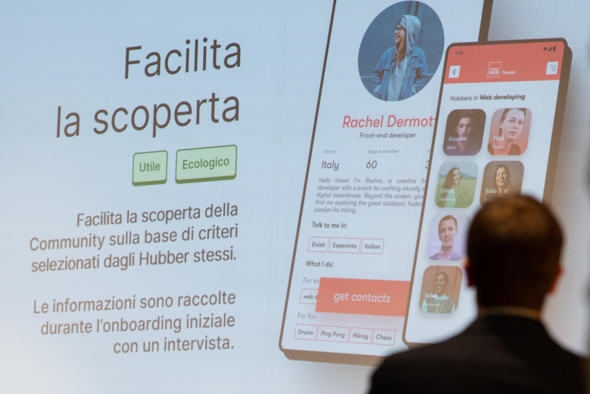 - Lo sviluppo di uno strumento (app o webapp) per tracciare le connessioni generate all’interno della community di Impact Hub Trento, rendendole note e promuovendo quindi il valore aggiunto di far parte del network.