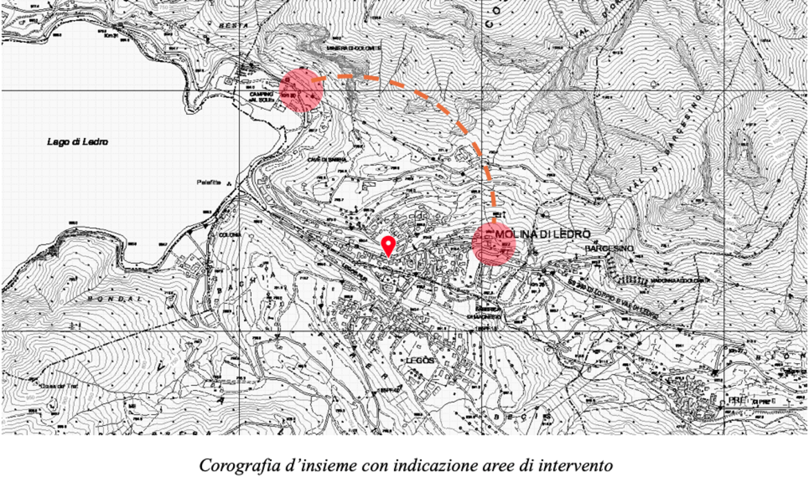 L’obiettivo primario è realizzare un nuovo tratto in galleria per decongestionare il centro abitato di Molina di Ledro e aumentarne la sicurezza. L’attuale tracciato presenta infatti strettoie che impediscono l’incrocio tra mezzi pesanti ed è privo di percorsi pedonali sicuri. Ci sono inoltre punti delicati rappresentati dagli accessi diretti alle abitazioni in prossimità del ciglio stradale.