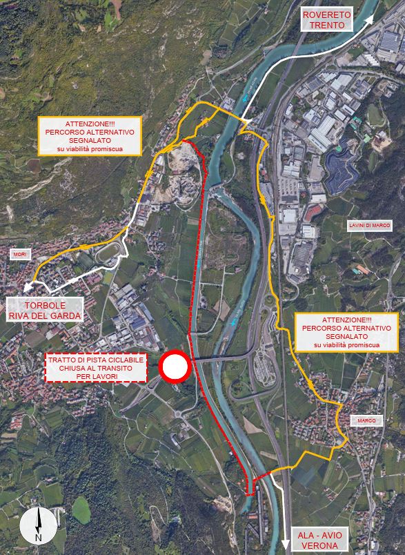 Sono stati predisposti in loco percorsi consigliati su una viabilità promiscua garantendo la percorrenza sulla direttrice nord-sud, con transito da Marco nel Comune di Rovereto, e anche quella verso e dal lago di Garda. I percorsi alternativi sono segnalati in loco.