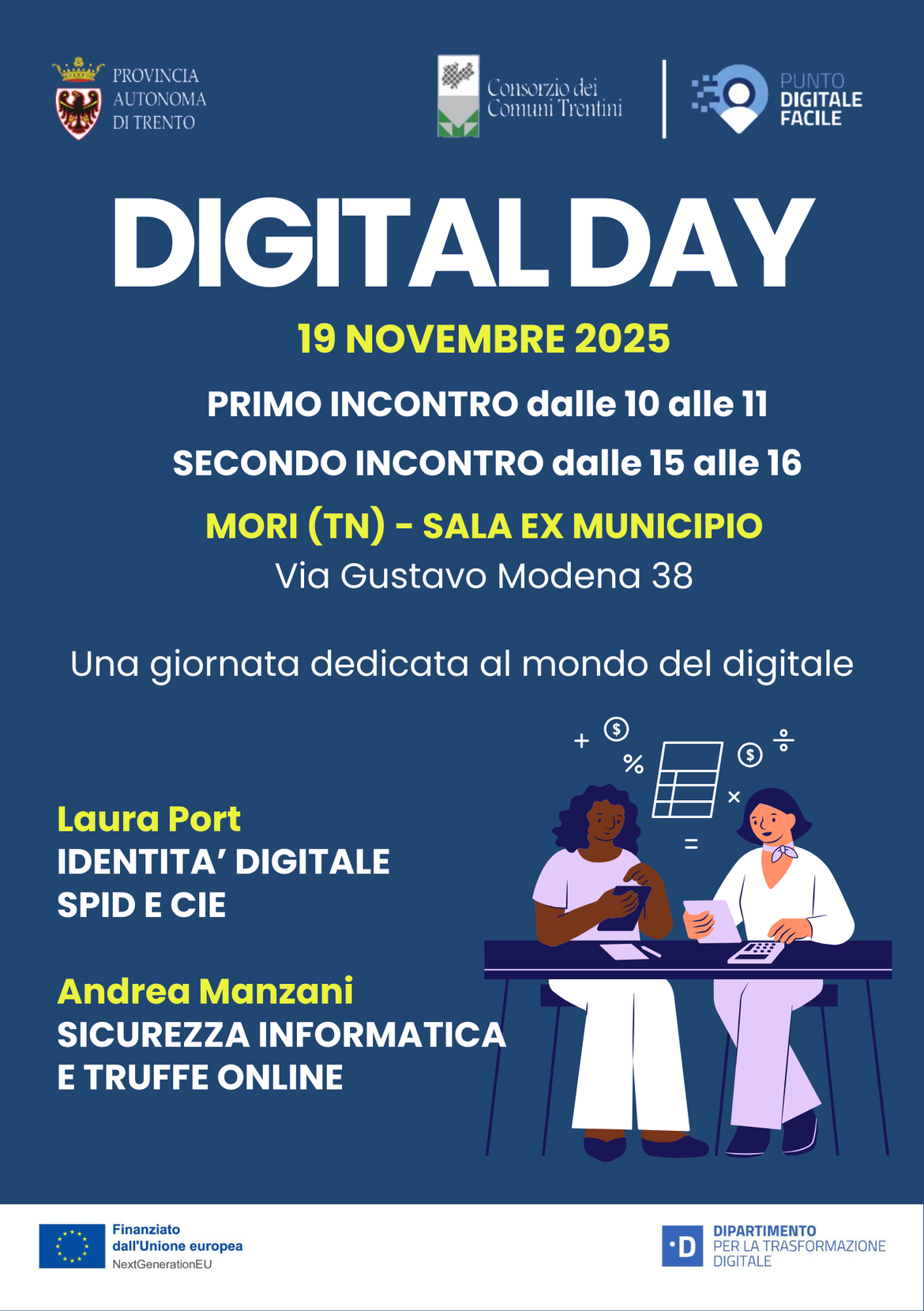 Il progetto è promosso dalla Provincia autonoma di Trento in collaborazione con il Consorzio dei Comuni Trentini, con l’obiettivo di diffondere le competenze digitali di base e favorire l’accesso ai servizi online. Al 10 novembre 2025, sul territorio provinciale sono già state realizzate 17.801 facilitazioni a beneficio dei cittadini trentini, anticipando il target fissato dal PNRR .