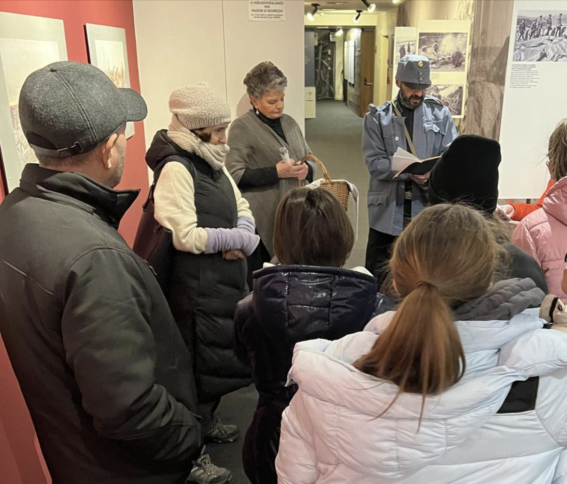 Chest an l Istitut Cultural Ladin de Fascia, dessema a la sociazion “Sul fronte dei ricordi” e al Comun de Moena, col sostegn de la Region Trentin-Südtirol, de l’Apt de Fascia e del Comun General de Fascia, à recordà apontin i 10 egn de la mostra “La Gran Vera / La Grande Guerra” e i 110 egn de istoria passé dal scomenz de chest aveniment rie e pesoch per la nazions e la popolazions toutes ite. Per chest l percors à pervedù ence scontrèdes con esperc pissèdes apontin per i studenc e la studentes del ultim an de la scola mesèna de la val. I studenc à podù scutèr su informazions enteressantes da la ousc ferèda del curator onorarie de la Mostra, Michele Simonetti Federspiel, jan do i fac de n tous e de na tousa da Moena che à vivù tel temp de la Pruma Vera. Dapodò i à podù tor pèrt a vijites treatralisèdes portèdes dant con pascion e braura da Ilaria Chiocchetti e David Dorich, da cheles che i à podù se emprevaler per lurèr fora dessegnes e slogan che ades se pel veder metui fora te posć segnificatives te duta la val.