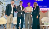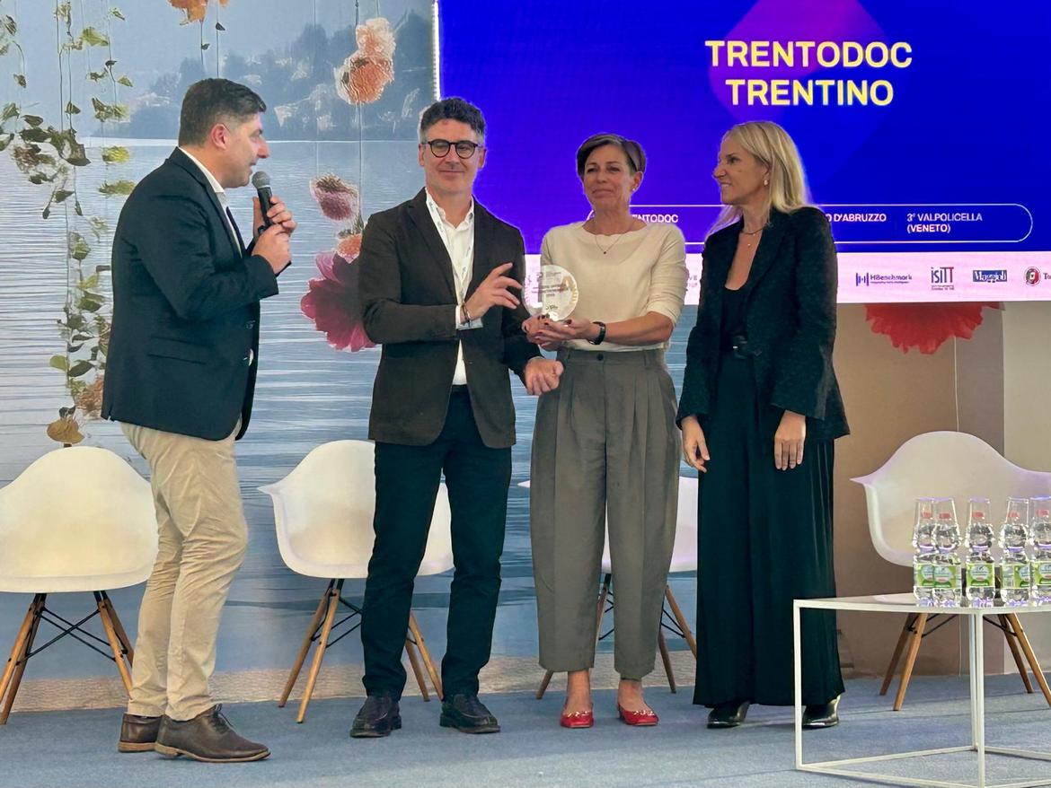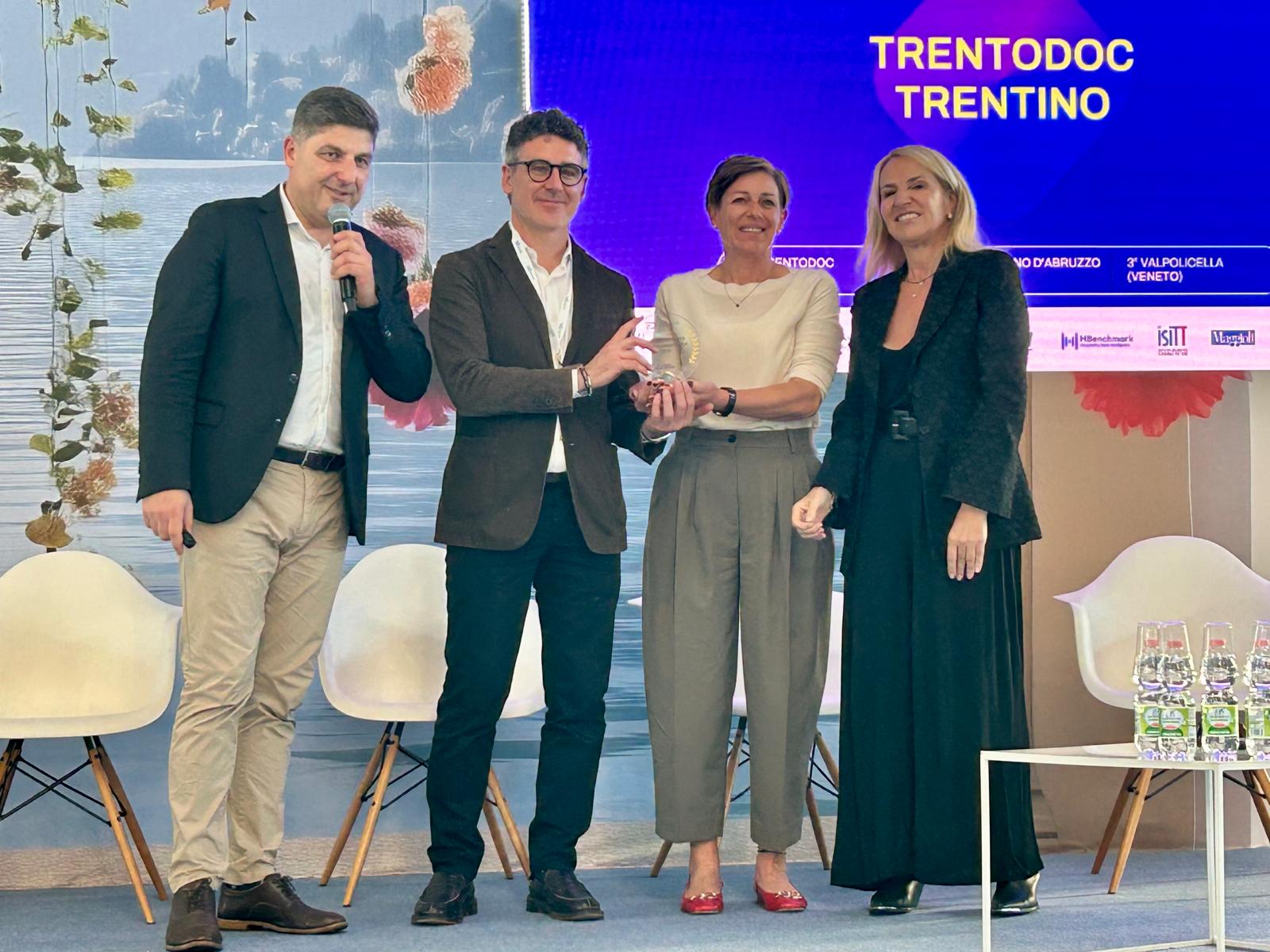 Il riconoscimento per il Trentino è stato ritirato da Paolo Pozzi, direttore operativo di Trentino Marketing e da Sabrina Schench Direttrice dell’Istituto Trento Doc.