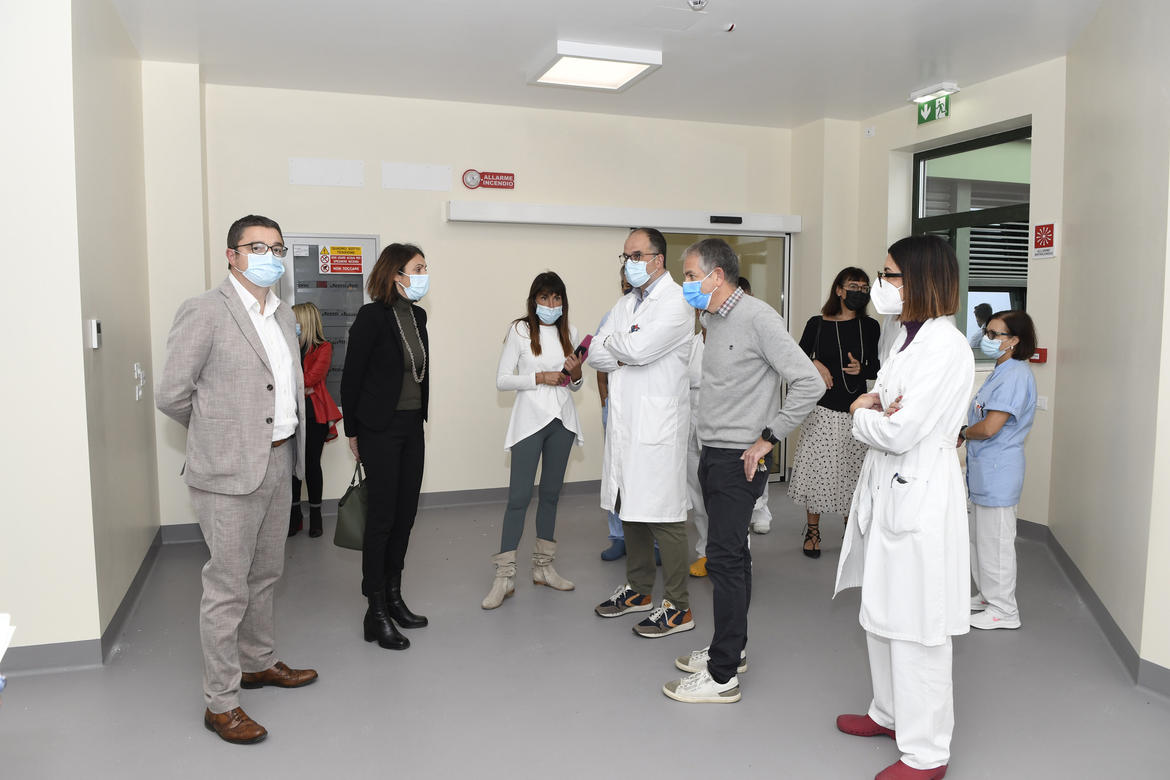 I dirigenti medici e il personale sanitario hanno presentato la situazione dell'ospedale di Arco, le criticità del pronto soccorso e l'eccellenza rappresentata dal Centro provinciale per la procreazione medicalmente assistita (PMA) portando anche suggerimenti e richieste. Quindi, a seguire, il sopralluogo ai lavori in corso: attualmente infatti si stanno realizzando 10 posti letto di terapia semi intensiva, adiacenti all’Unità Operativa di Pneumologia, al quinto piano, che potranno servire anche come posti di alta intensità per l’area medica, a seconda della necessità. I dieci posti letto sono legati a una programmazione nazionale, rientrano infatti nell'ambito del Piano di riorganizzazione della rete ospedaliera italiana, e sono finanziati dallo Stato con un importo pari a 1.198.000 euro. I lavori, che hanno subito dei rallentamenti dovuti all'aumento dei prezzi innescato dalla crisi energetica, si concluderanno entro la fine del 2022. Sempre all'ospedale va segnalato anche un intervento complessivo per migliorare la logistica del Pronto Soccorso, con la realizzazione della nuova sezione dell’osservazione breve con 4 posti letto rispetto ai 2 precedenti e l’ampliamento degli spazi, grazie alla ristrutturazione della ex camera calda anche in funzione di osservazione breve e ‘filtro’ per pazienti Covid positivi. Completata anche realizzazione di una nuova camera calda adiacente alla precedente, per assicurare l’arrivo in zona protetta delle ambulanze; complessivamente si tratta di un intervento di 60.000 euro per la parte del Pronto Soccorso e di 270.000 euro per la camera calda, finanziati sempre nell'ambito della programmazione nazionale legata al Covid.