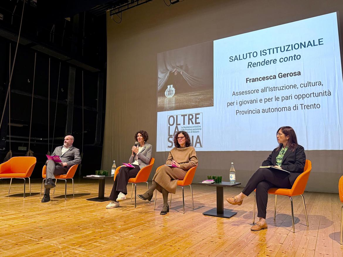 La pubblicazione "Oltre la scena" arriva quindi a dieci anni dall’avvio del progetto, con un’analisi e una riflessione su quanto fatto. Il testo si suddivide in quattro parti: la prima è dedicata alle riflessioni istituzionali e politiche che racchiudono la "vision" entro la quale si collocano gli investimenti per le residenze artistiche; la seconda propone una sintesi dell'esperienza dal punto di vista sociale e normativo, partendo dalla nascita del Fondo unico per lo spettacolo, fino al decreto ministeriale del 1 luglio 2014, che ha introdotto la cornice normativa entro la quale organizzare e sostenere il settore. In questa sezione vengono rendicontati anche gli investimenti sia dal punto di vista ministeriale sia delle Province di Trento prima e poi anche di Bolzano. La terza parte è dedicata all’esperienza specifica della Provincia di Trento, iniziata nel 2015, che si è poi estesa alla Provincia di Bolzano e che ha assunto nel 2018 la veste formale di Centro di residenza regionale. Infine, la quarta raccoglie testimonianze e contributi di artisti, operatori ed esperti nell’ambito dello spettacolo dal vivo.