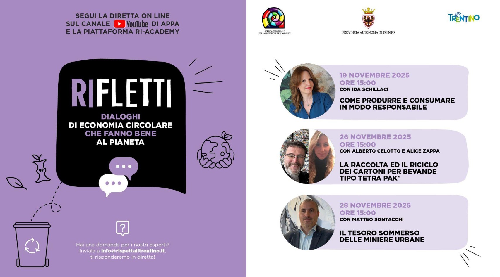La partecipazione è aperta a tutti e gratuita. Si può accedere alle dirette attraverso la piattaforma Ri-Academy o il canale YouTube dell’Agenzia provinciale per la protezione dell’ambiente. Per chi seguirà da YouTube, si consiglia di cliccare sulla campanella "Avvisami" per ricevere una notifica all'inizio dell'evento.