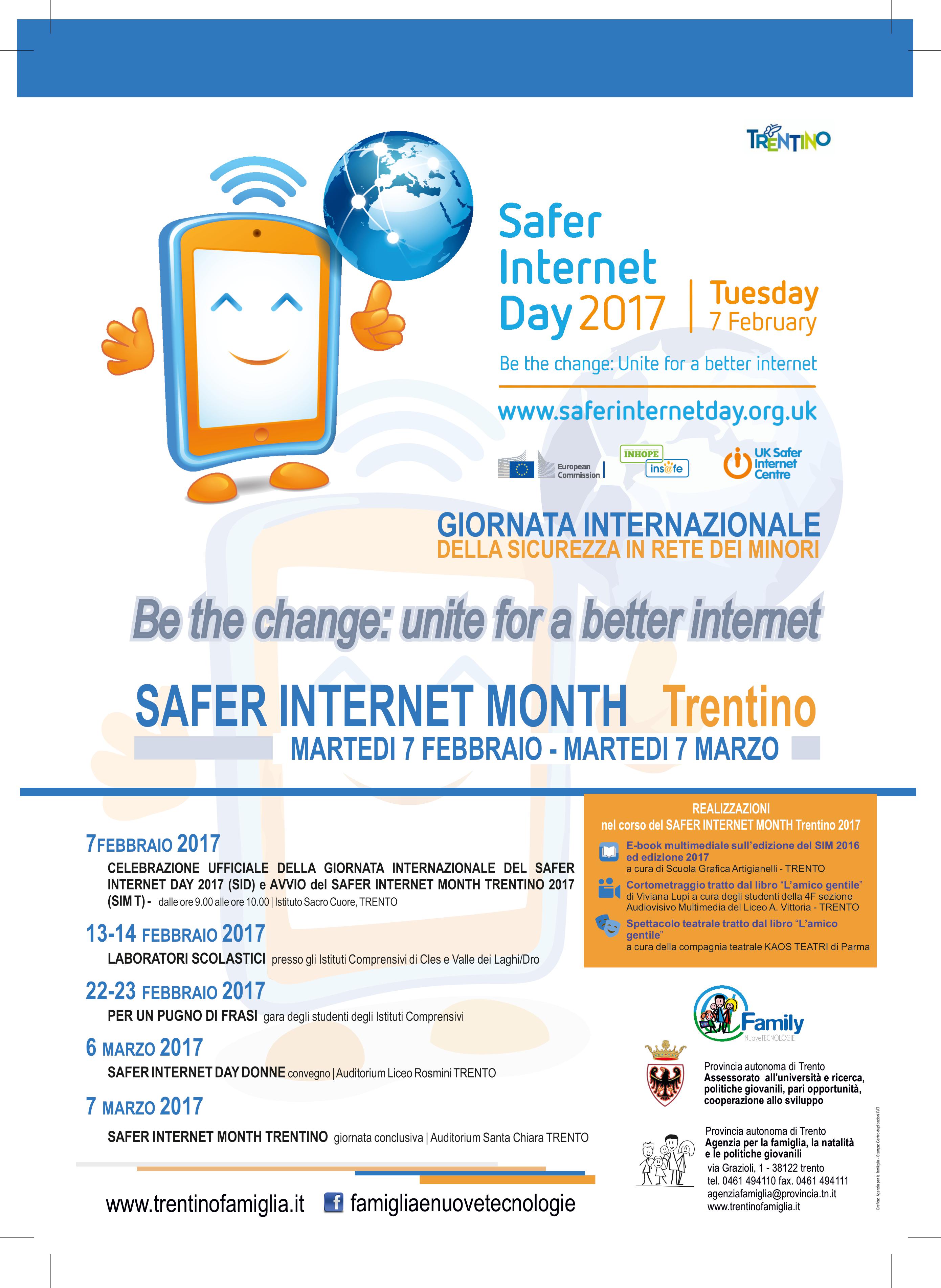 - Martedì 7 febbraio (Safer Internet Day) ore 9.00 all’istituto Sacro Cuore di Trento, avvio e presentazione del programma del SIM T;