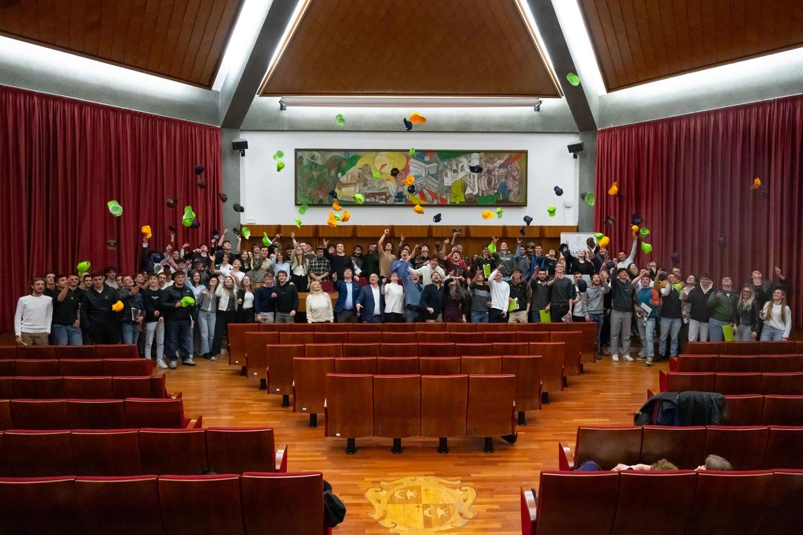 Il cuore della cerimonia è stata però la consegna dei diplomi ai circa cento studenti presenti. Prima della consegna, il pubblico ha assistito allo spettacolo “Il diritto di sbagliare”, di e con Lucio Gardin, un momento capace di coniugare riflessione e leggerezza, in sintonia con il significato educativo della giornata. La cerimonia si è svolta in un momento particolarmente significativo per la FEM, ad iscrizioni appena concluse per il prossimo anno scolastico. A conclusione dell’evento, la tradizionale foto di gruppo con il lancio del cappellino e un momento conviviale hanno suggellato una giornata di festa e di orgoglio per l’intera comunità scolastica.