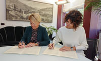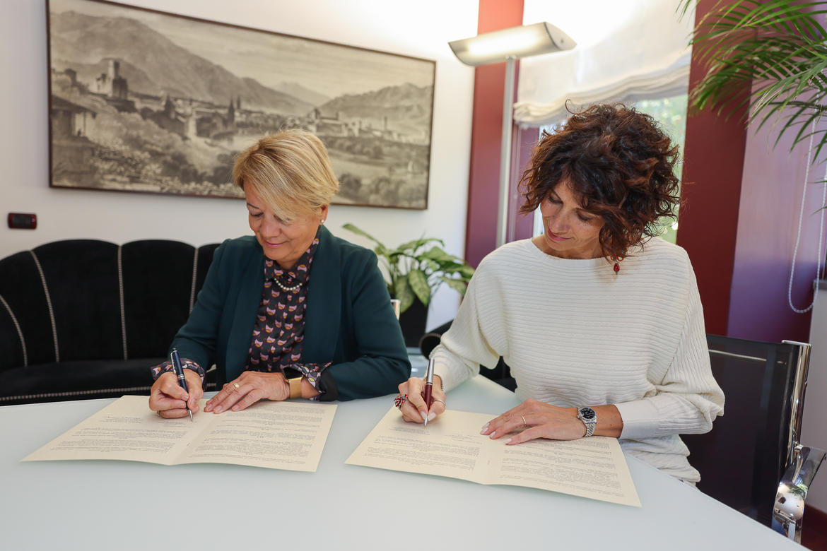 Firma nuovo protocollo tra Provincia e Coni "Sport nelle scuole d'infanzia e primarie". Nella foto: Paola Mora, Francesca Gerosa [