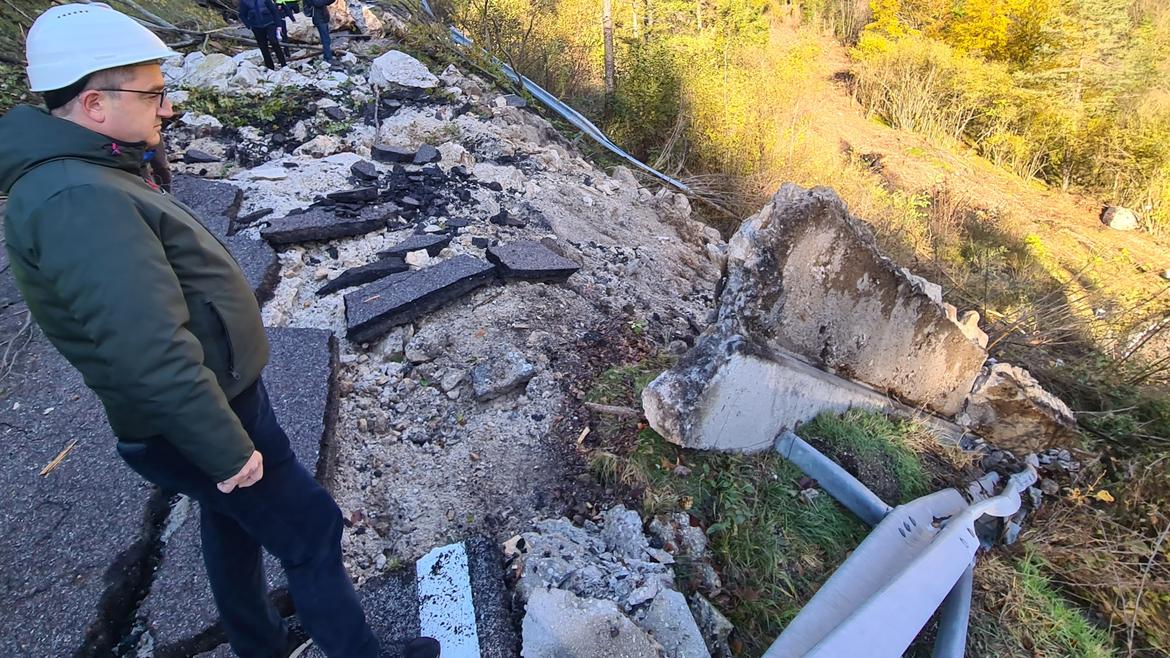 Il dirigente Luciano Martorano, affiancato dal dirigente del Servizio geologico Mauro Zambotto e da Paolo Nicolussi Paolaz, capo dell’Ufficio strutture stradali e responsabile lavori per il ripristino, ha spiegato i dettagli dell’intervento. Attualmente, la strada è chiusa al traffico e praticamente distrutta in almeno tre punti dalla caduta dei massi avvenuta alle 23.30 circa di sabato 4 novembre. Un effetto provocato dal diedro di roccia che si è staccato sopra i tornanti in località Busatti, frammentandosi in molti blocchi e distruggendo barriere di protezione e vari segmenti della strada.