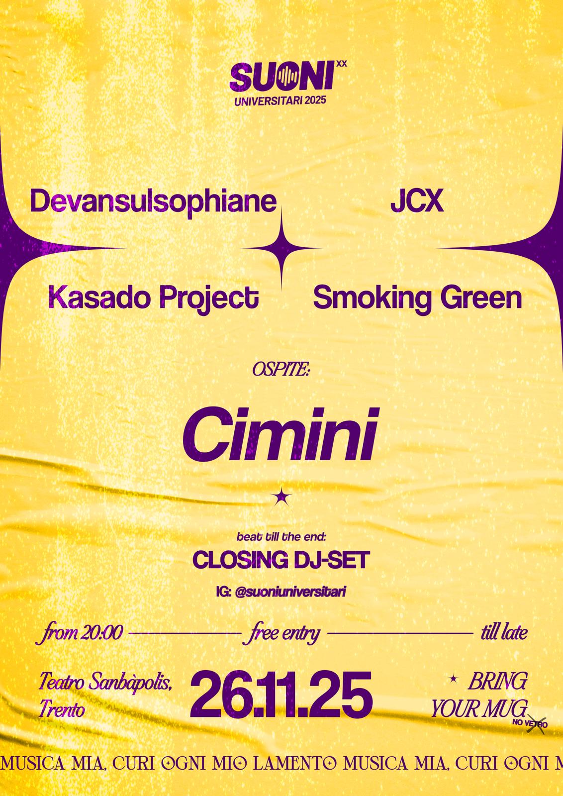 Suoni Universitari è un contest organizzato da Opera Universitaria, in collaborazione con il Centro Servizi Culturali Santa Chiara, il Centro Musica del Comune di Trento e le associazioni universitarie Sanbaradio, Unitin, UDU ed Asi Leonardo.