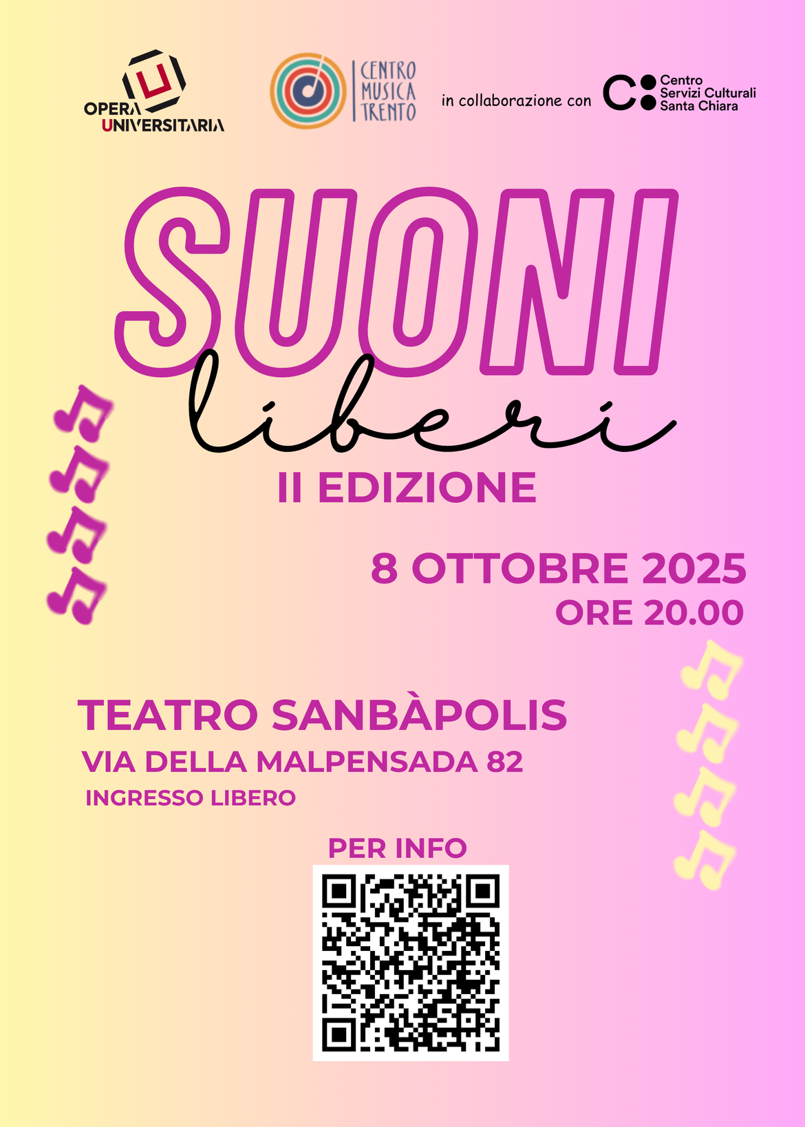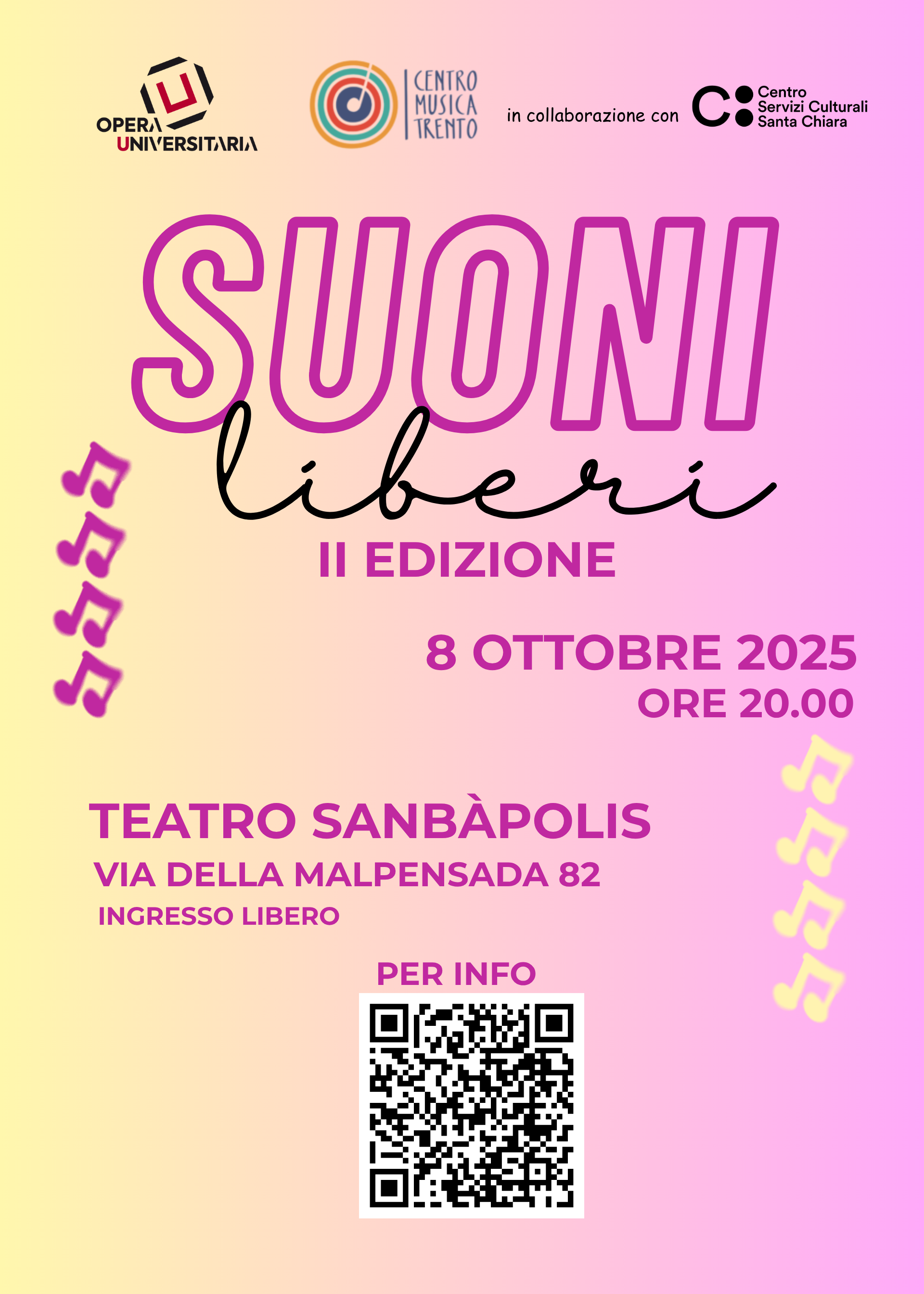 Suoni Liberi non è una competizione né un laboratorio formativo, ma un’occasione per condividere la propria passione per la musica in un contesto professionale, con luci, audio e strumentazioni degne di un vero e proprio spettacolo dal vivo.