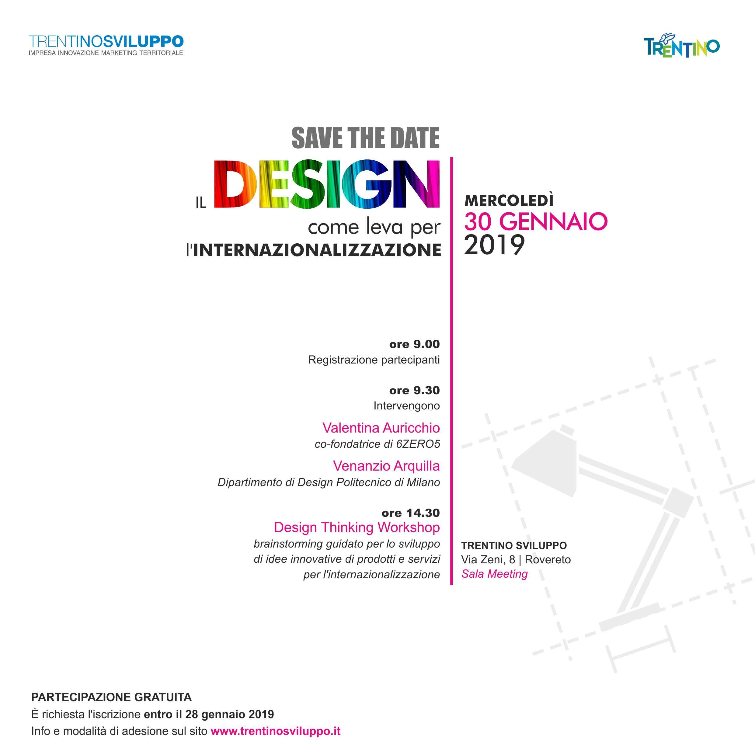 L’innovazione passa dalla scoperta di nuovi punti di vista, contaminazioni, stimoli culturali e tecnologici provenienti da mercati diversi. Nel campo dell’internazionalizzazione, quindi, il design rappresenta un approccio concreto e vincente per migliorare la performance della propria azienda all’estero. Trentino Sviluppo propone un incontro formativo dedicato proprio a questo, rivolto alle imprese trentine dell’arredo e del sistema casa, ma aperto a tutti gli interessati. La giornata si svolgerà il 30 gennaio nella Sala Meeting del Polo Tecnologico di Rovereto (Via Zeni 8) con inizio alle ore 9.30.