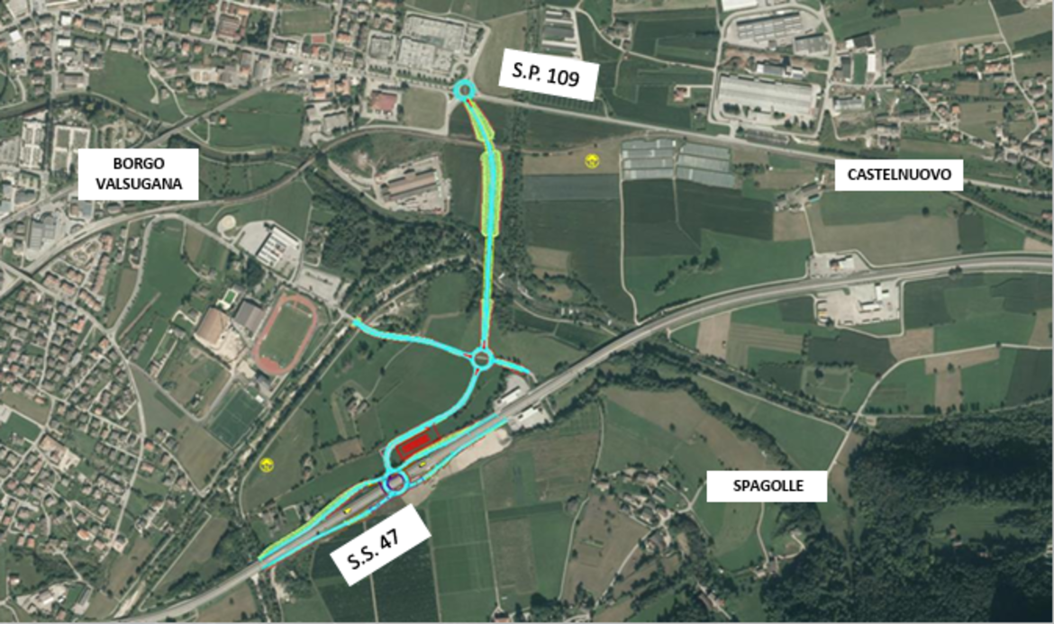Lo svincolo sulla SS 47 è stato posizionato circa 200 metri più a ovest rispetto all’ipotesi iniziale, in prossimità dei distributori di carburante nel territorio comunale di Castelnuovo e si congiungerà con la rotatoria esistente di viale Venezia, lungo la Sp 109, all’ingresso est del centro abitato. La soluzione tecnica prevede un’infrastruttura a due livelli: la rotatoria di accesso a due corsie, interrata in galleria artificiale, posta sotto il sedime della statale 47 e le rampe di immissione e uscita in direzione Trento e Bassano. Al fine di permettere la realizzazione della rotatoria interrata sarà realizzata una viabilità alternativa con deviazione provvisoria della Statale 47. Troverà spazio anche un parcheggio di attestamento.
