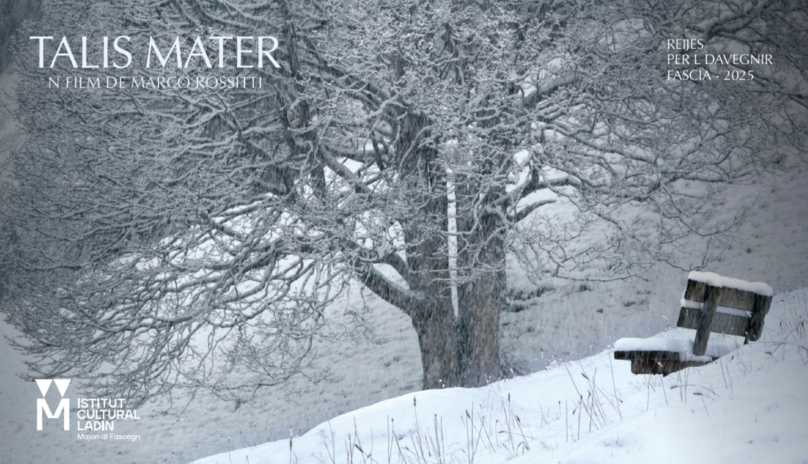 [Ladino] En sabeda ai 15 de november, da les 5 domarena te Chino Marmolèda de Cianacei, vegnarà portà dant la prejentazion del film Talis Mater, na neva opera del regist Marco Rossitti, endrezèda dal Istitut Ladin “majon di fascegn” de Sèn Jan. Do che l é stat moscià al Film Festival de la Lessinia de Bosco Chiesanuova (Verona) e al Bergfilm-Festival de Tegernsee, te la Germania, l film rua zacan te sia tera, per na scontrèda spetèda desche n moment de fon valor emozionèl e culturèl per duta la comunanza ladina.